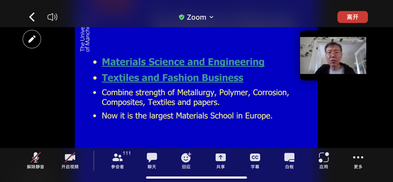 与曼彻斯特大学的联系,提升了同学们对材料学科的认识,帮助同学们进一步完善对未来的规划,对于学科建设和培养学生国际化视野意义重大。