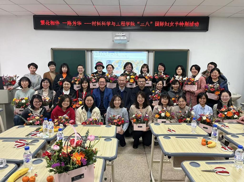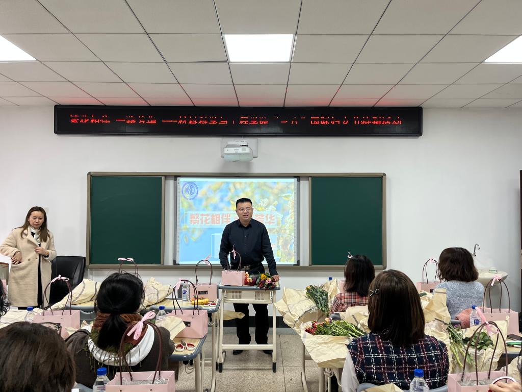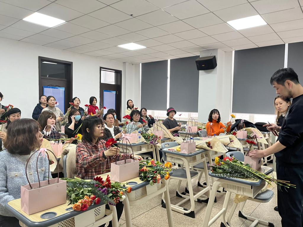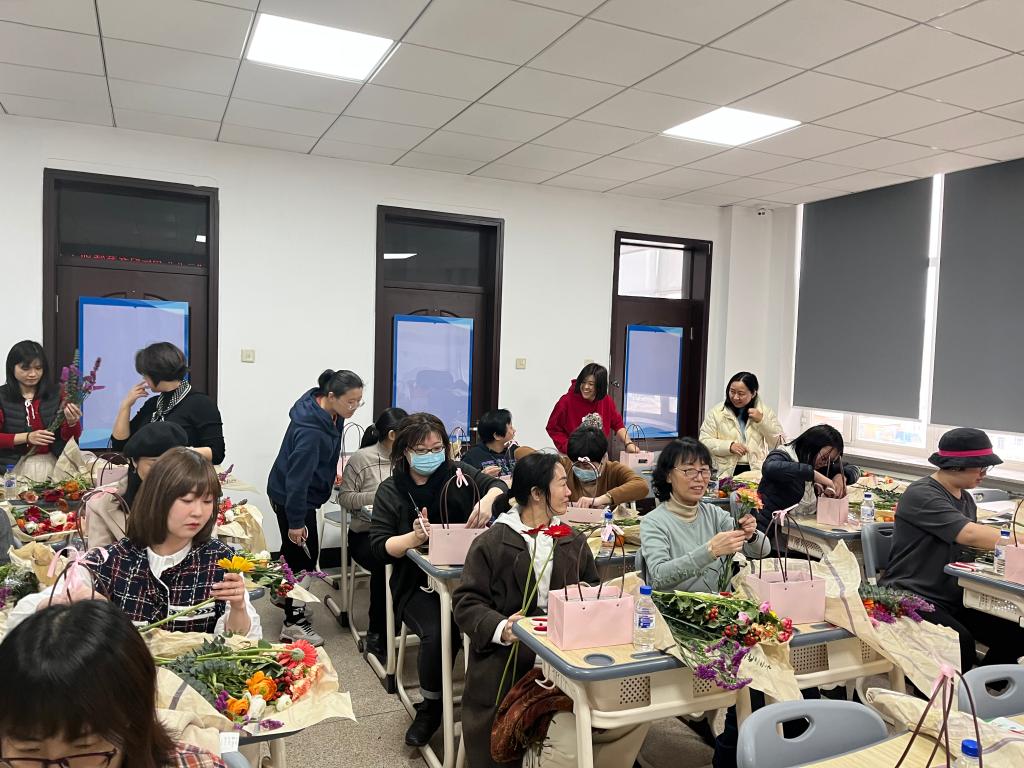 活动伊始,郑孝义副院长对女教职工传达了节日的问候,对她们多年来在自己的工作岗位上锐意进取、奋进昂扬的精神风貌表示了高度赞赏,并祝愿她们在今后的生活中事业家庭双丰收。随着活动正式开始,花艺师首先讲解了多头玫瑰、洋牡丹、康乃馨等现场花卉的花形花语及养护技巧,而后老师们按捺不住跃跃欲试的心态,开始亲自动手以各式鲜花搭建装点手中的小花园,通过调整花形、修剪花枝、调整位置,老师们在花艺师的示范和指导下纷纷搭配出了自己独具匠心、各有特色的艺术小花篮,现场花团锦簇、生机盎然,老师之间氛围更是温馨热烈、朝气蓬勃。活动最后,刘远书记进行了总结发言,表示材料黑料正能量