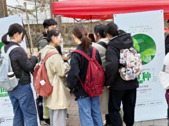 于二餐、四餐门前进行摆摊宣传“播种一颗种子”志愿活动。南岭校区全体学生均可参加活动。