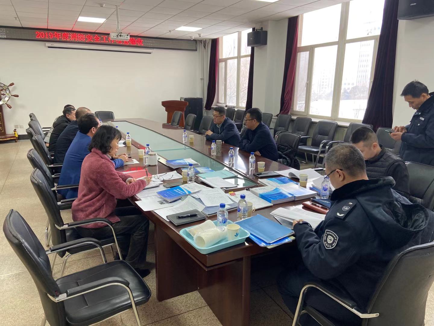 2019年度消防安全检查验收工作汇报会在机械材料馆410会议室召开,东区综合办主任曲晓明,保卫办主任刘子玉等一行5人对黑料正能量