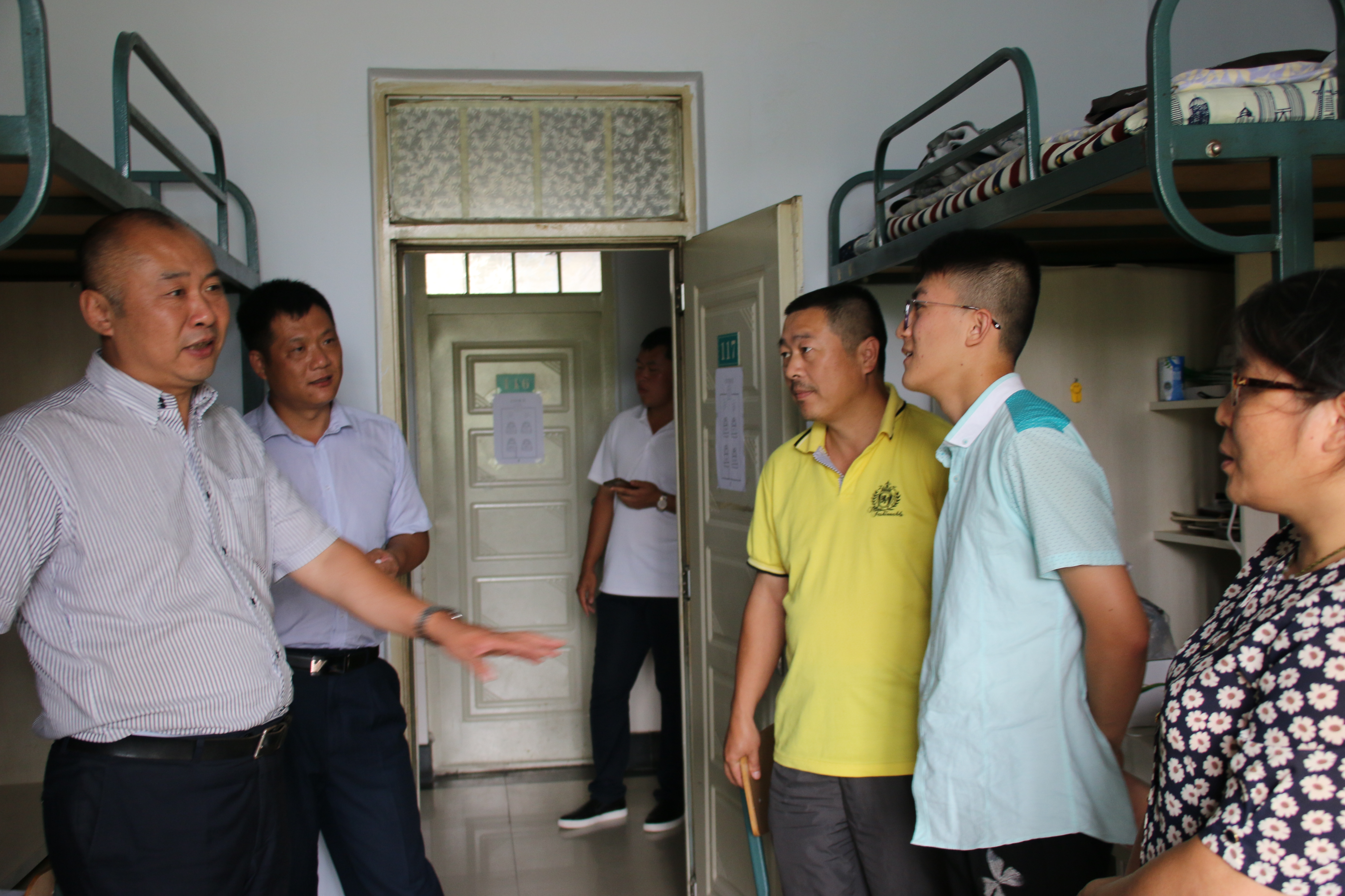党委书记刘远,党委副书记兼副院长李东生,2017级辅导员杨超,2016级辅导员严冬以及辅导员助理走访了新生寝室,查看了新生住宿及内务情况。