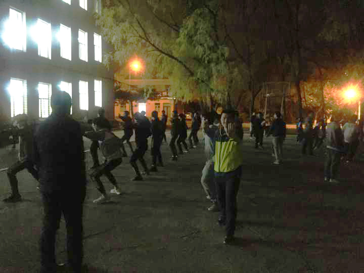 2016级学生于每晚8时30分准时在指定地点集合完毕,并在社团联合会工作人员的指导下进行训练,他们与指导人员一起刻苦努力,对自身每一个动作都要求十分严格,一板一眼,丝毫不懈怠。随着训练次数的增加,参赛学生对长拳的每个动作渐熟于心,阵式也逐渐整齐统一。