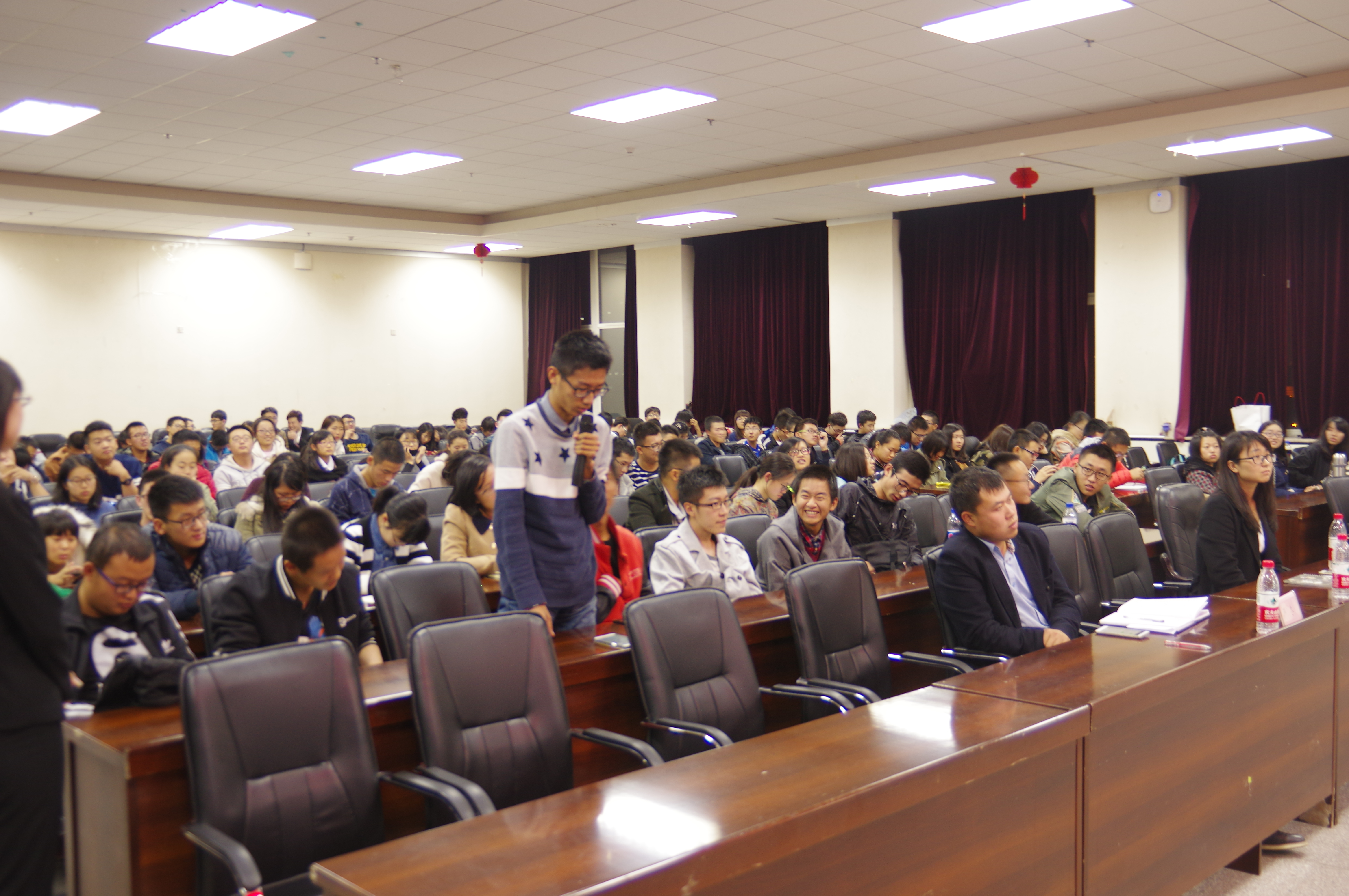 讲座伊始,金佳老师用让学生们张开双臂,保持水平,食指贴合拇指的方法,活跃现场气氛,放松学生情绪,从而使他们意识到掌握放松精神方式的重要性,随后金佳老师结合PPT、自身经历、事实案例等向同学们讲授了识别心理疾病的方法,心理障碍所表现出的行为特征与预防心理疾病的措施,分析了产生心理问题的原因,讲述了目前国内外心理咨询情况,呼吁同学们积极参加心理疏导,让他们深刻明白了心理健康的必要性,在师生互动问答中,同学们积极踊跃提问,向老师提出自己感到困惑的问题,老师耐心地讲解。并在讲座尾声,留下了自己的联系方式,以便日后能更好地为同学们解决心理问题,最终,讲座在热烈的掌声中圆满结束。