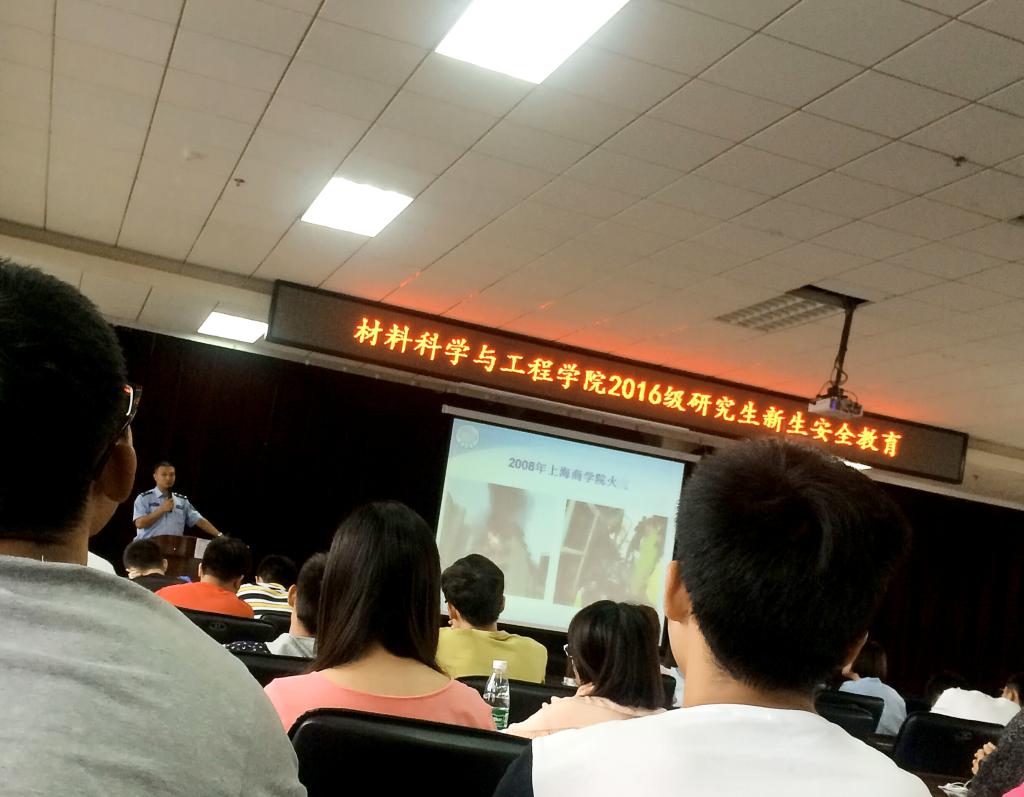 的人才培养、就业形势和文体活动等进行详细说明;东区保卫办公室消防科的韩旭老师为2016级研究生新生进行了消防安全知识教育,增进了大家的消防意识和应对突发火情的处置能力;东区综合办治安科的于珺科长对2016级研究生新生进行了综合治安专题讲座,以防盗为主线教育广大新生提高自身防盗意识;于雅琳老师作了学位与研究生教育相关政策的专题讲座,让2016级研究生深入了解到了黑料正能量