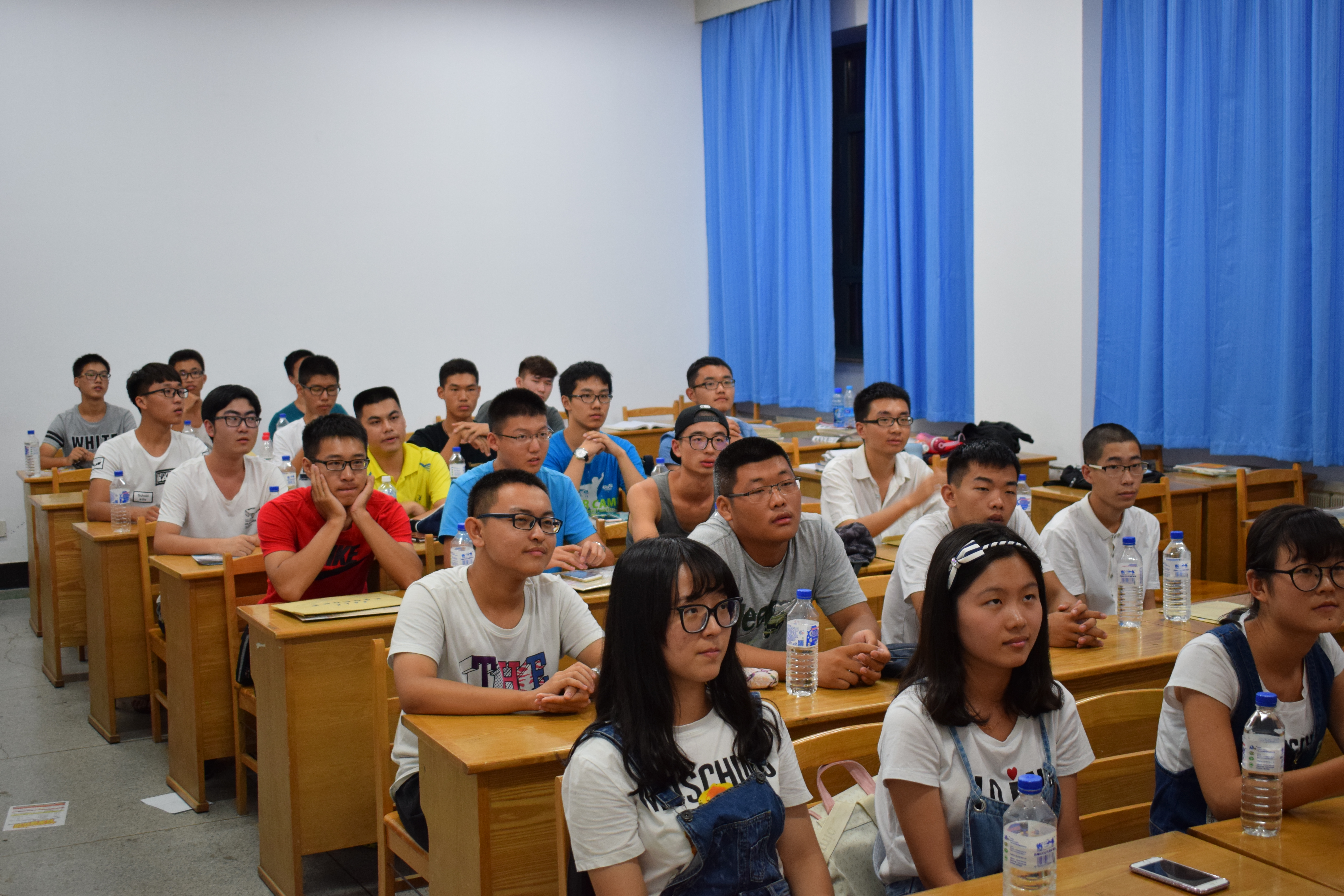 各班于8月22日晚上在逸夫楼A区302、303、305、306、307、308、309、310、402、403、404举办了大一新生班会。各班班代负责主持,2016级辅导员严冬问候各班。