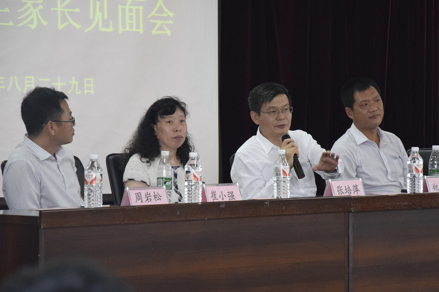 学生工作情况。在家长提问环节,老师们一一解答了家长关心的专业研究方向、就业情况、出国准备等大学生可能面临的问题。同时,老师们提醒新生注意安全问题,“人身安全”、“财务安全”,“环境安全”等方面都要提高警惕。整场座谈会在愉快的氛围下结束。 新生家长对本次会议给以了高度评价。