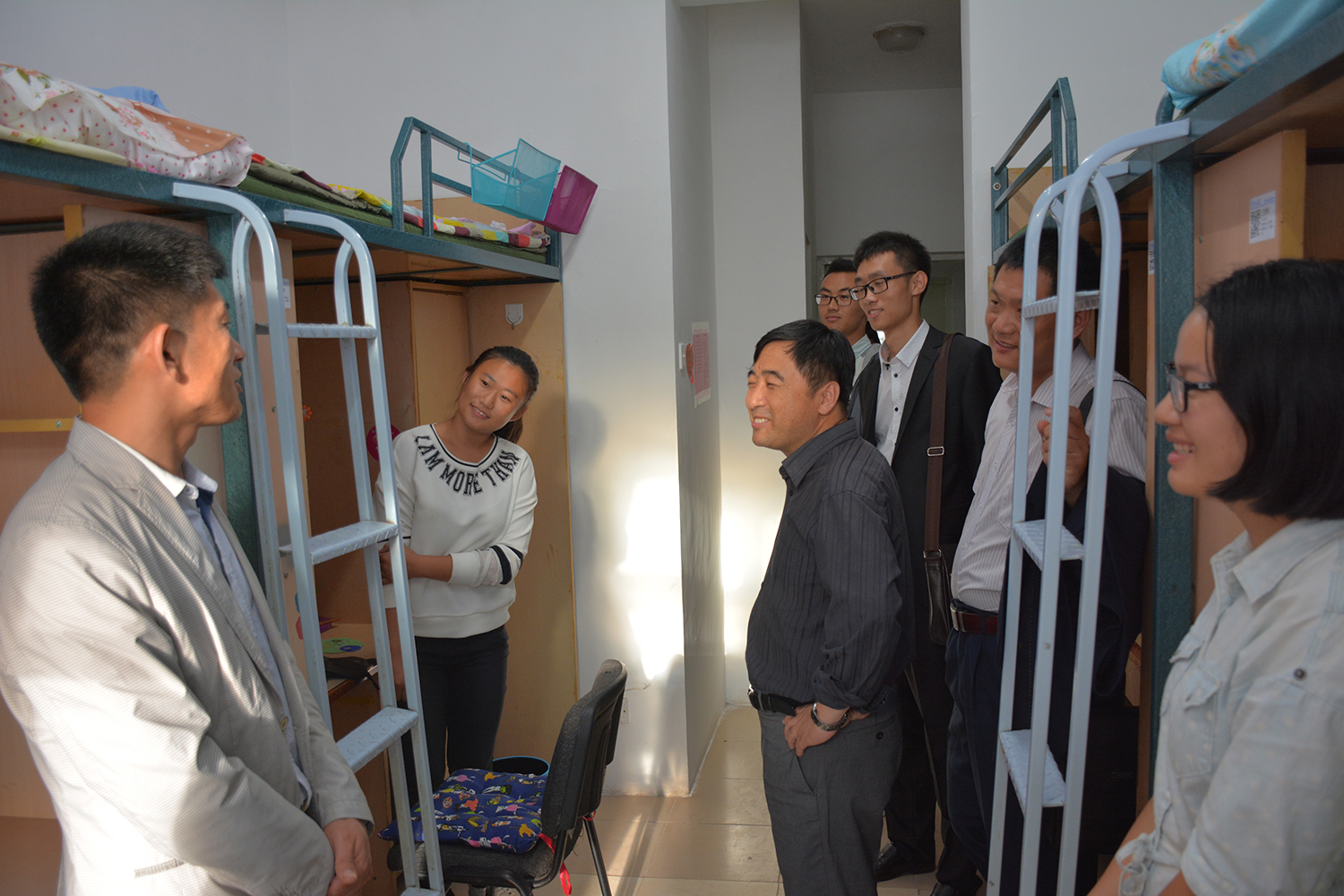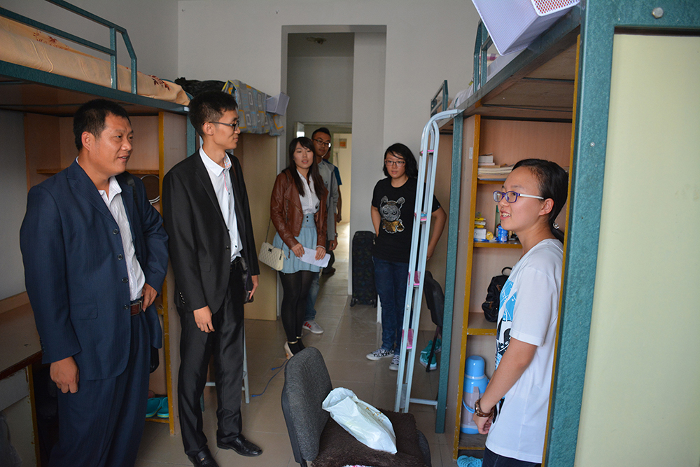 走进新生寝室,可以看到同学们行李已安置妥帖,把寝室整理得井井有条。老师们亲切地问候了15级新生家乡近况,是否适应长春的水土,对大学生活的期待和规划等。院领导关切地嘱托同学们要在大学中珍惜时间、完善自我、提升修养,并就校园安全问题嘱托同学们关好门窗,注意安全。