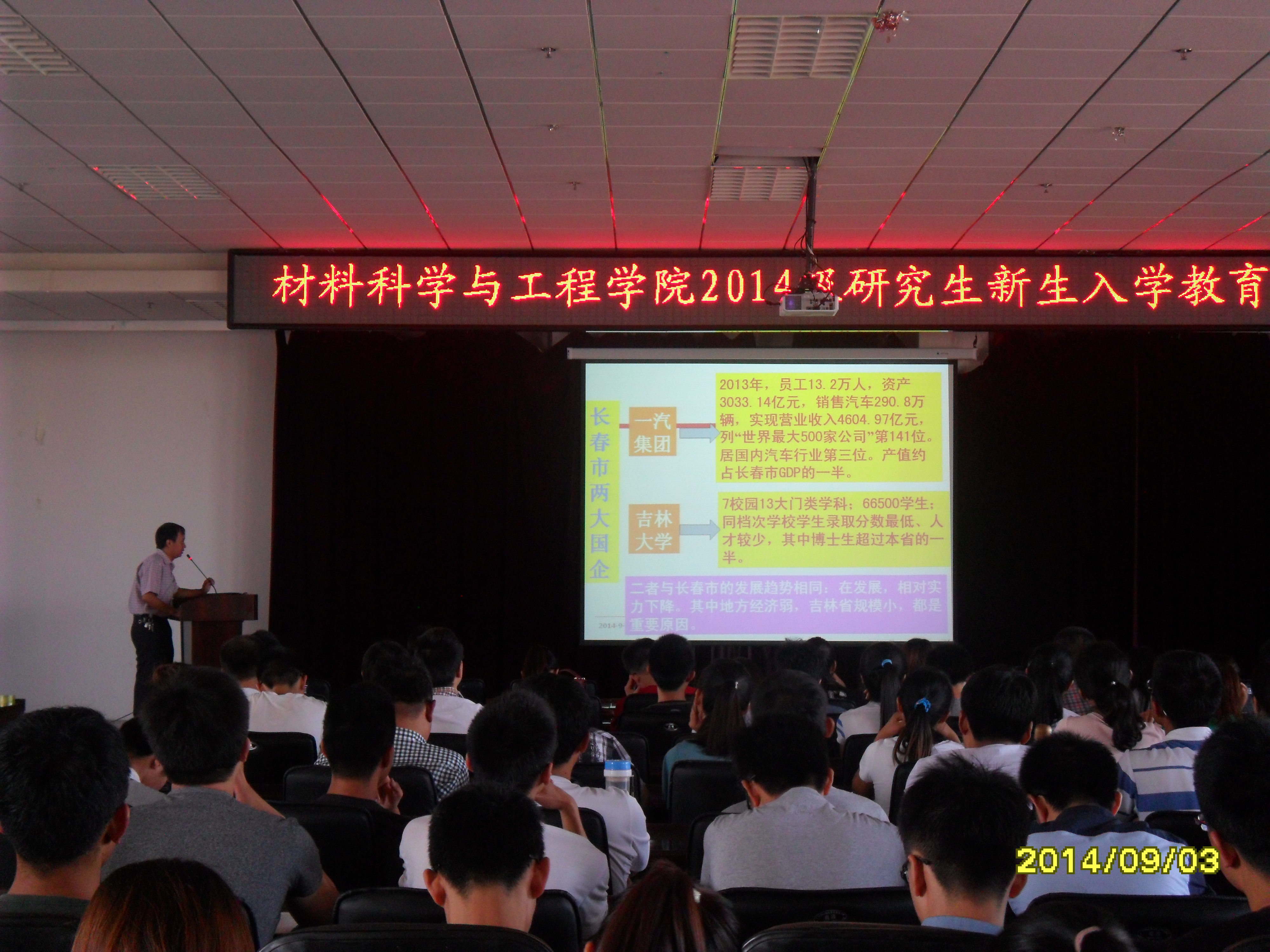 在逸夫机械材料馆报告厅举行了2014级研究生入学教育大会。副院长朱永福教授、党委副书记于雅琳老师、研究生办公室秘书刘徽老师,以及材料黑料正能量