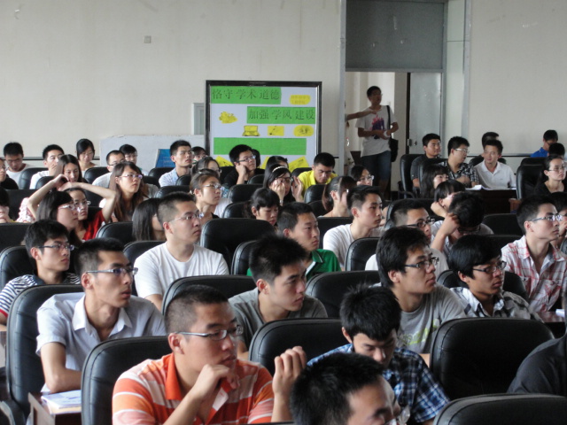 有了更多了解。随后姜教授从三个方面向大家讲解如何坚守学术道德,加强学风建设。第一个方面:做学问要先学会做人,他以自身课题组的硕士邓刚的研究成果对国民经济的做出重要贡献为例教育大家要有使命感,责任感,要有正确的人生观、价值观和崇高的理想;第二方面:学会做事,做任何事都要诚信守法,懂得奉献,团结互助,与人为善;第三方面:如何做学问,教育大家要有强烈的求知欲,有创新精神,有拼搏进取、百折不挠的精神。最后姜教授对大家提出了希望,希望大家努力历练,培养素质,成为德智体全面发展的人,成为国家的栋梁之才。