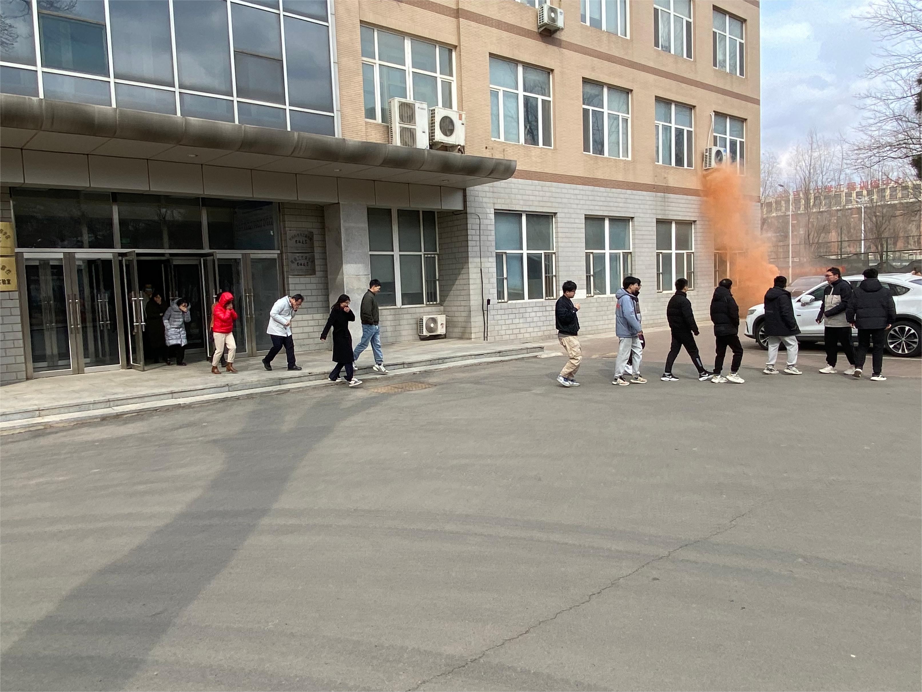 召开消防逃生安全疏散演练部署会议,制定详细、周密的演练方案,对疏散路线、撤离位置、注意事项等都作了明确要求。演练开始前,保卫办王中刚老师对演练方案进行了详细解读,并对相关注意事项进行了特别强调。火灾警报声响起后,参演师生按照预定的疏散路线快速有序撤离;王中刚老师现场指导、演示正确使用灭火器材,扑灭初起明火。整个演练过程井然有序,达到了预期效果。