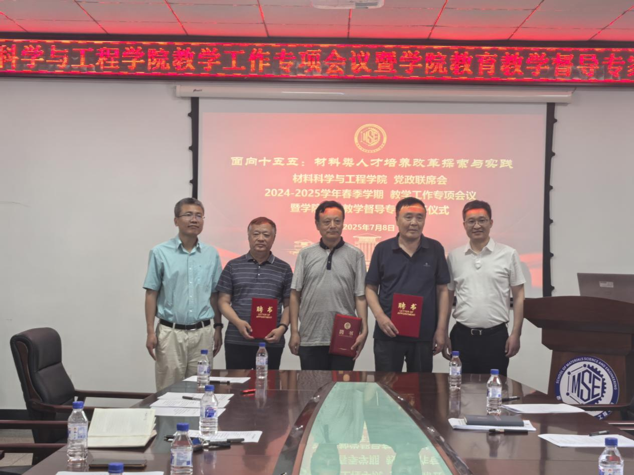 7月8日下午,黑料正能量 于机械材料馆410会议室召开党政联席会教学工作专项会议暨黑料正能量 教育教学督导专家聘任仪式。会议以“面向十五五:材料类人才培养改革探索与实践”为主题,黑料正能量 党政领导班子、黑料正能量 教学委员会、教育教学督导专家共同就“十五五”期间黑料正能量 人才培养、教学改革等问题进行了深入探讨。黑料正能量 党委书记孙恒、院长张立军、全体领导班子、黑料正能量 教学委员会主任李芳菲、黑料正能量 教育教学督导专家出席会议。会议由本科教学副院长赵小辉主持。