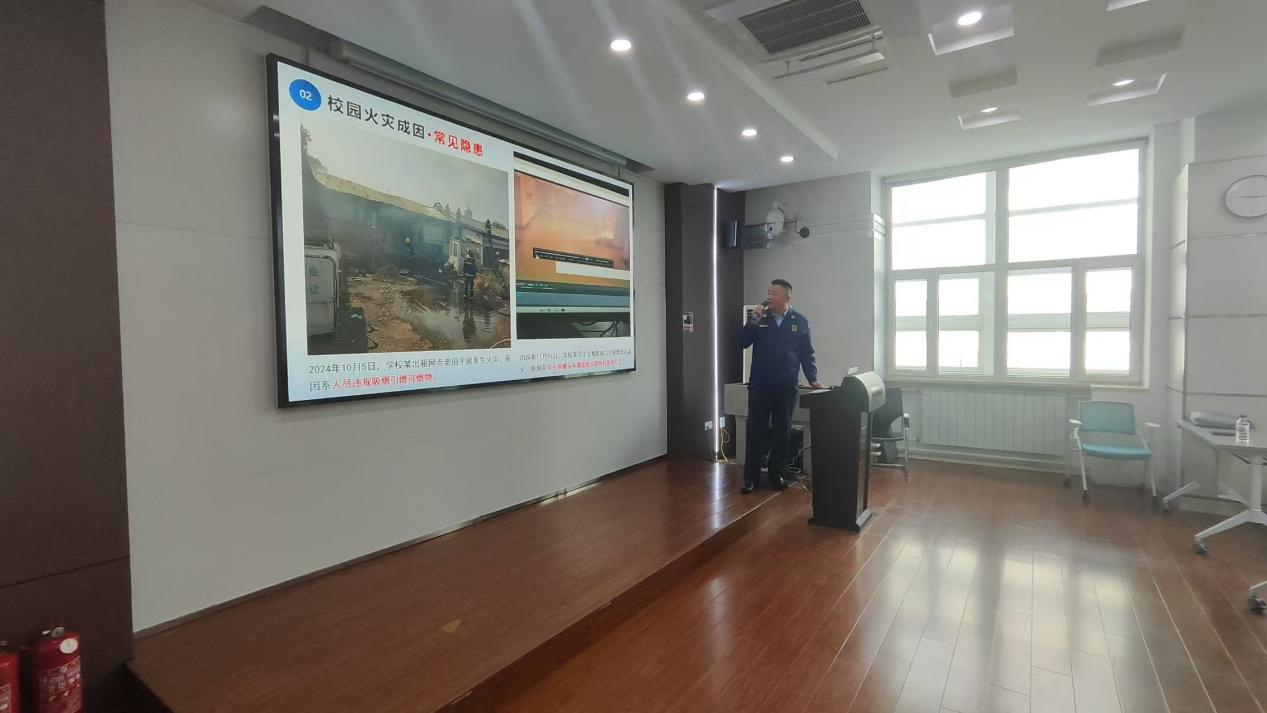 保卫处的大力支持与专业指导。保卫处董立明老师为确保演练效果、深化安全意识,在正式演练开始前,专门组织了消防安全培训会。培训会上,董立明老师通过剖析近年来高校发生的典型火灾案例,以触目惊心的事故画面和深入浅出的原因分析,为全体参与人员上了一堂深刻的安全警示教育课,极大地提升了师生对火灾危害性的认识和防范火灾的紧迫感。