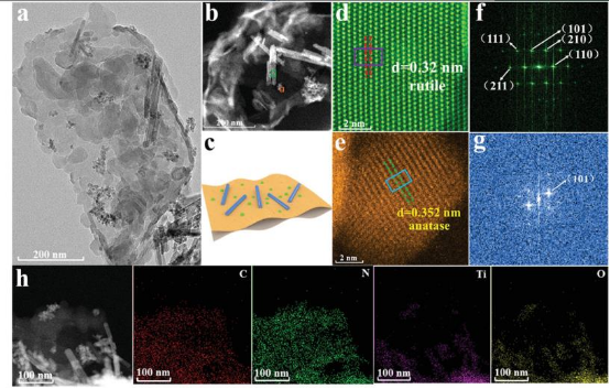 为了解决这个问题,本工作提出了一种新颖的“双 S 方案”,其结构由两种氧化型光催化剂和一种还原型光催化剂组成。通过形貌等多种表征证明,我们成功在锐钛矿 TiO2 纳米粒子和 H 掺杂金红石 TiO2 纳米棒之间插入二维石墨氮化碳纳米片,并形成了双S型转移机制的新型自组装结构。