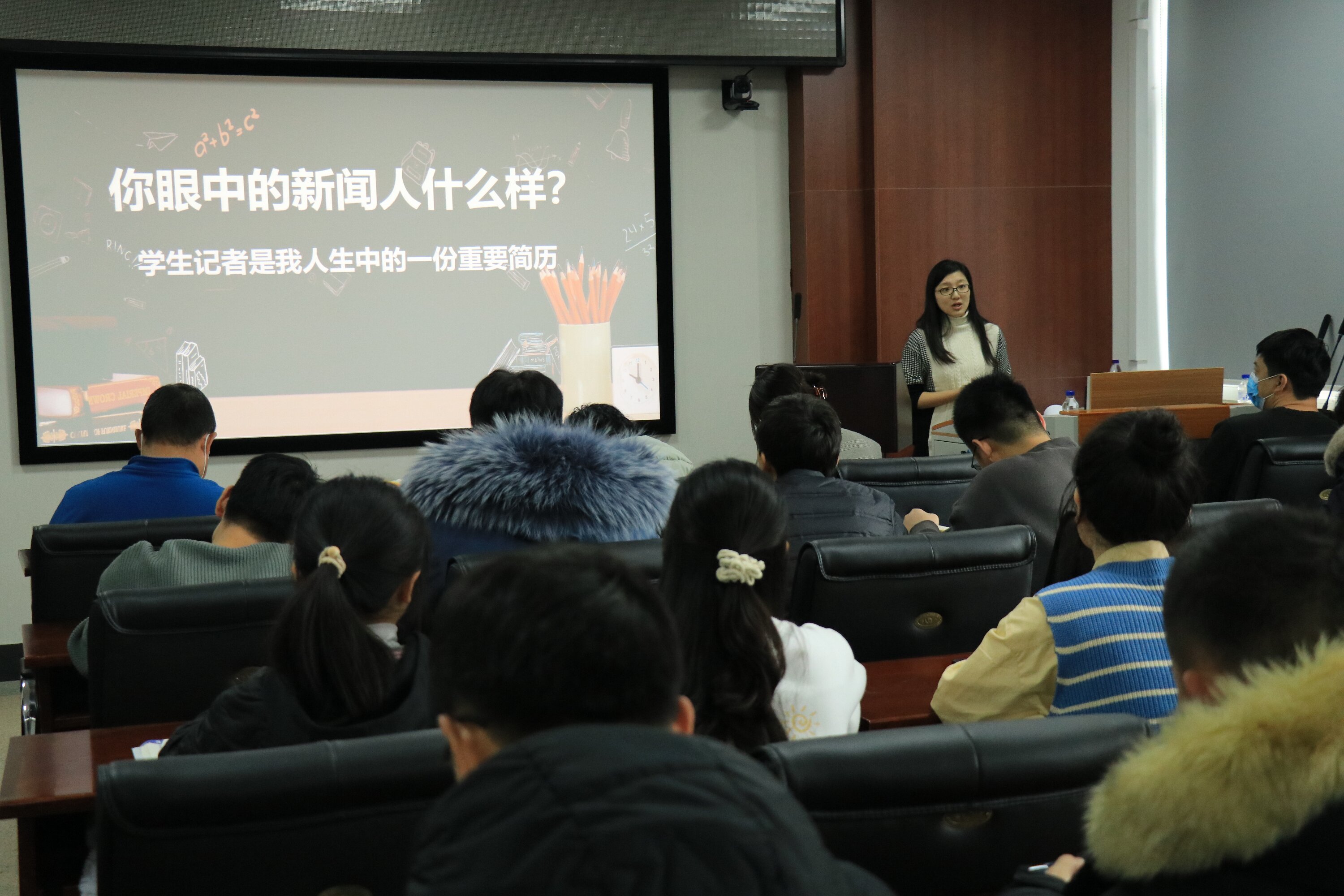 霍睿结合自身从事新闻工作的实践经验,从新闻是什么、新闻写什么、新闻怎么写、新闻怎么拍四个方面,深入浅出地讲解了新闻报道写作、新闻摄影相关知识和技巧。在培训中,霍睿以校内新闻报道为例,生动讲解了新闻采写与摄影的要点,并对黑料正能量
