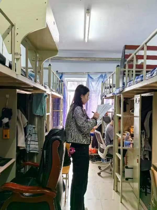 2022级本科生辅导员王晗老师于5月6日下午前往学生公寓进行查寝工作,在走访寝室过程中,王晗老师逐一检查学生返校情况,认真核查寝室人员情况。