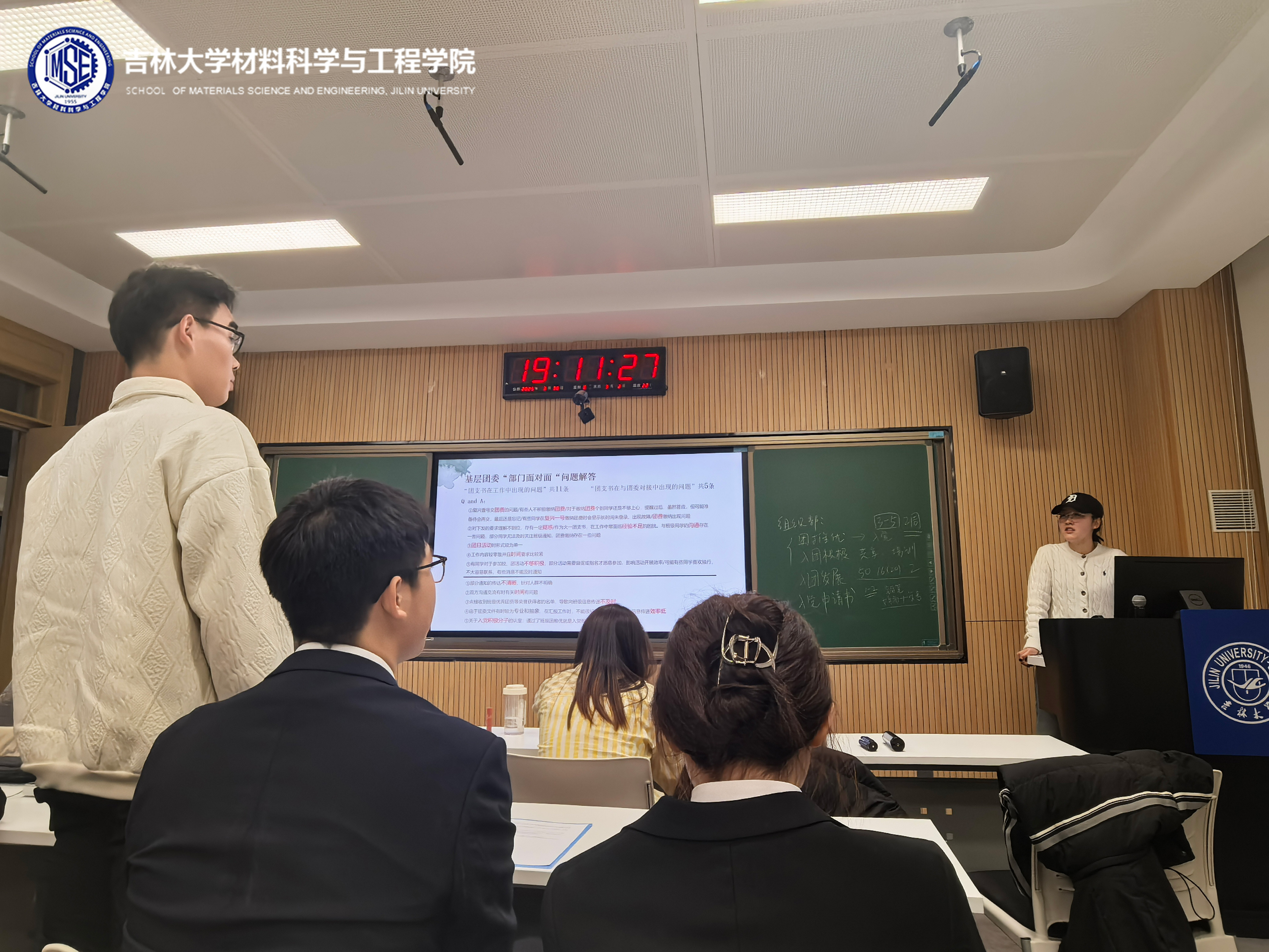随后针对前期调研收集的16项工作问题,团委各部门负责人现场答疑。组织部负责人李诗语针对工作零散且时效性强、同学参与活动不积极、通知传达不畅等问题进行了解答,并梳理了组织部主要工作安排集中时间及工作流程;秘书部负责人周小涵就复兴壹号团费缴纳困难信息传达效率低等问题提出解决方案,呼吁团支书加强沟通、及时反馈;社团管理部负责人胡怀碧重点介绍了本学期计划开展的文体活动,呼吁大家引导班级同学踊跃参加,做好宣传工作;青年发展部负责人王颢添针对团日活动时形式较为单一的问题,强调活动应贴近学生生活,将日常实践与思想教育相结合;团委学生副书记魏轩宇对团支书过往工作给予肯定,呼吁大家广泛了解班级同学的真实想法,积极向团委提出吸引青年、切实可行的活动想法,并针对部分同学对于入党流程的疑惑做出解答。