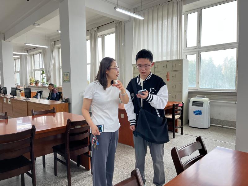 随着电梯门缓缓打开,参观图书馆之旅从图书馆五楼开启,五楼和四楼都是阅览室,同学们在一排排书架间穿梭,或品味琢磨、或仔细搜寻、或快速阅览,大家都安静地感受着在书海中畅游的学习氛围;同学们继续跟随老师的脚步来到三楼的报刊阅览室,报刊摘录了各种前沿论文、著作,同学们轻轻翻阅浏览,找寻着自己兴趣所在;随后同学们来到二楼,参观自习室,同学们还留意到桌面上的励志标语,仔细阅读;最后,在一楼展厅,同学们学习了检索机器的使用和图书借还的流程之后,进入一楼二楼藏书室参观。