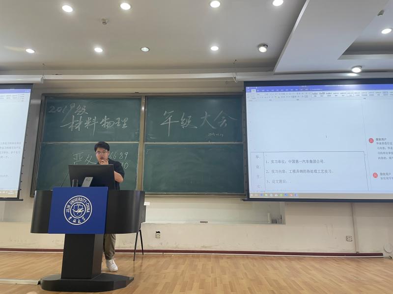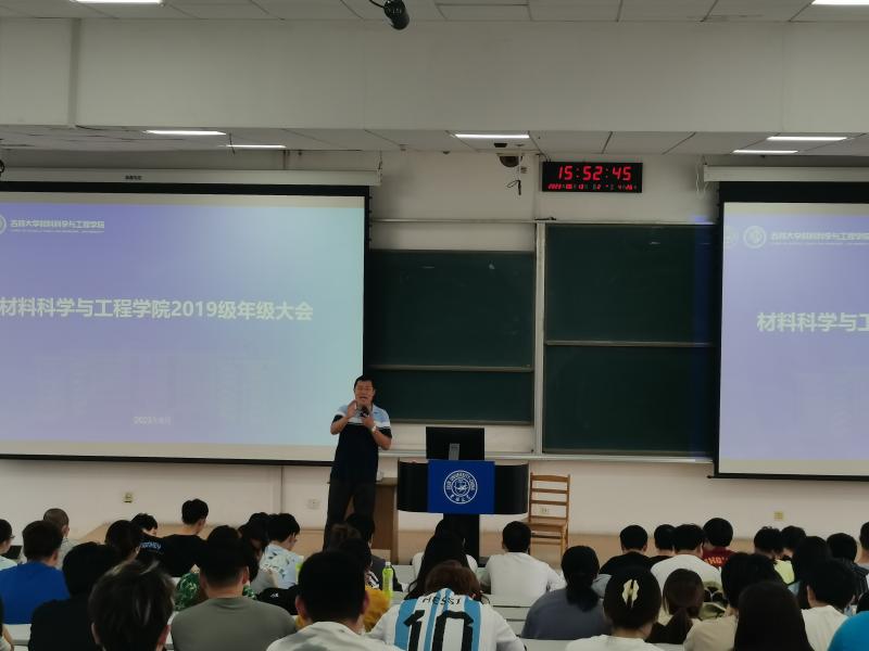 本科生辅导员严冬老师、张晗禹老师于2023年6月13日共同前往中心校区敬信F区第8阶、南岭校区逸夫楼A411分别召开材料物理专业、材料类专业年级大会。