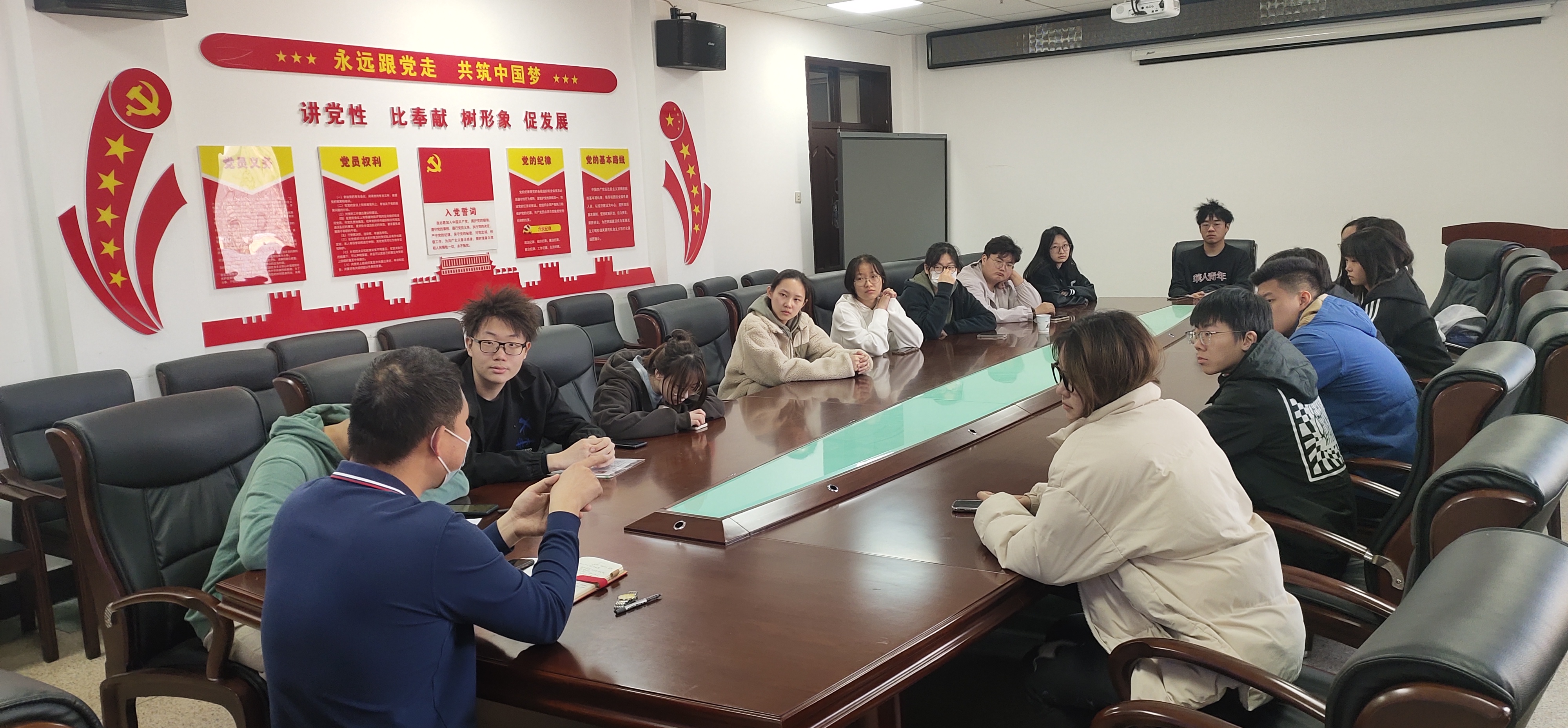 材料类2021级本科生辅导员严冬老师,于2023年4月17日中午在南岭校区逸夫机械材料馆410会议室组织召开期中阶段学生思想动态调研暨期中阶段学生工作布置会,材料类2021级各班班长、团支书参加了本次会议。
