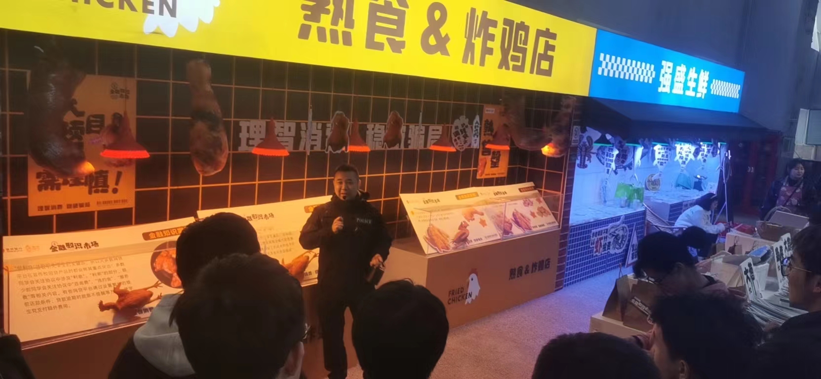 本次活动采用沉浸式体验形式进行宣传,根据电视剧“狂飙”中的场景搭建了金融知识市场。活动伊始,“金融知识市场管理员”与“强盛生鲜店长”以幽默的情景剧方式开场,提醒同学们要提高警惕,避免电信诈骗。接下来同学们参观了相关展区,包括水果店、熟食店、五金商店等,在展区中,讲解员老师或是以朗朗上口的顺口溜宣传反诈知识,如“常吃水饺和汤圆,提防欺诈被骗钱;酱油蚝油菜籽油,骗子舌滑嘴也油“;亦或是以谐音梗形式来提醒大家理智消费,谨防消费陷阱,如莫名电话清远“梨”,新鲜骗“橘”,小心“柚”惑等。随后,由东区保卫办田老师为同学们讲解了同学们身边发生过的真实案例,让同学们真切感受到反诈防骗与每个人都息息相关。