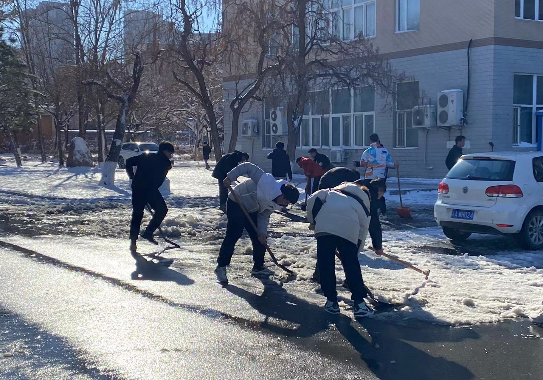 分发的扫雪工具,认真落实自己班级负责的区域。随后,同学们齐齐挥动着扫雪工具,在冰雪覆盖的道路上挥洒汗水,扫清路面上的每一分雪,铲掉表面结固的每一寸冰。在同学们的不懈努力下,最后大家成功地将每一个负责的区域清理干净,使路面环境焕然一新,也保证了同学们的出行安全。