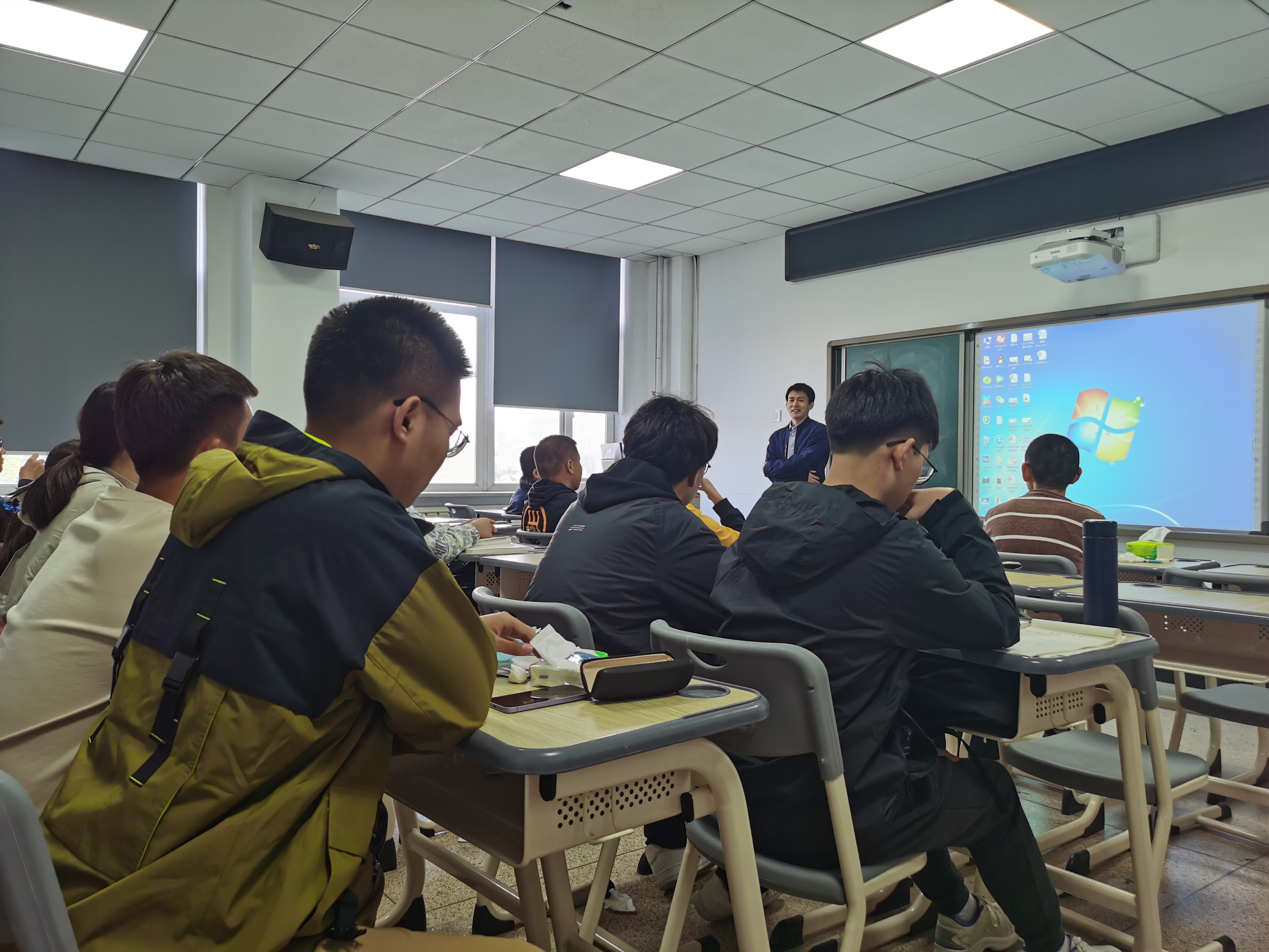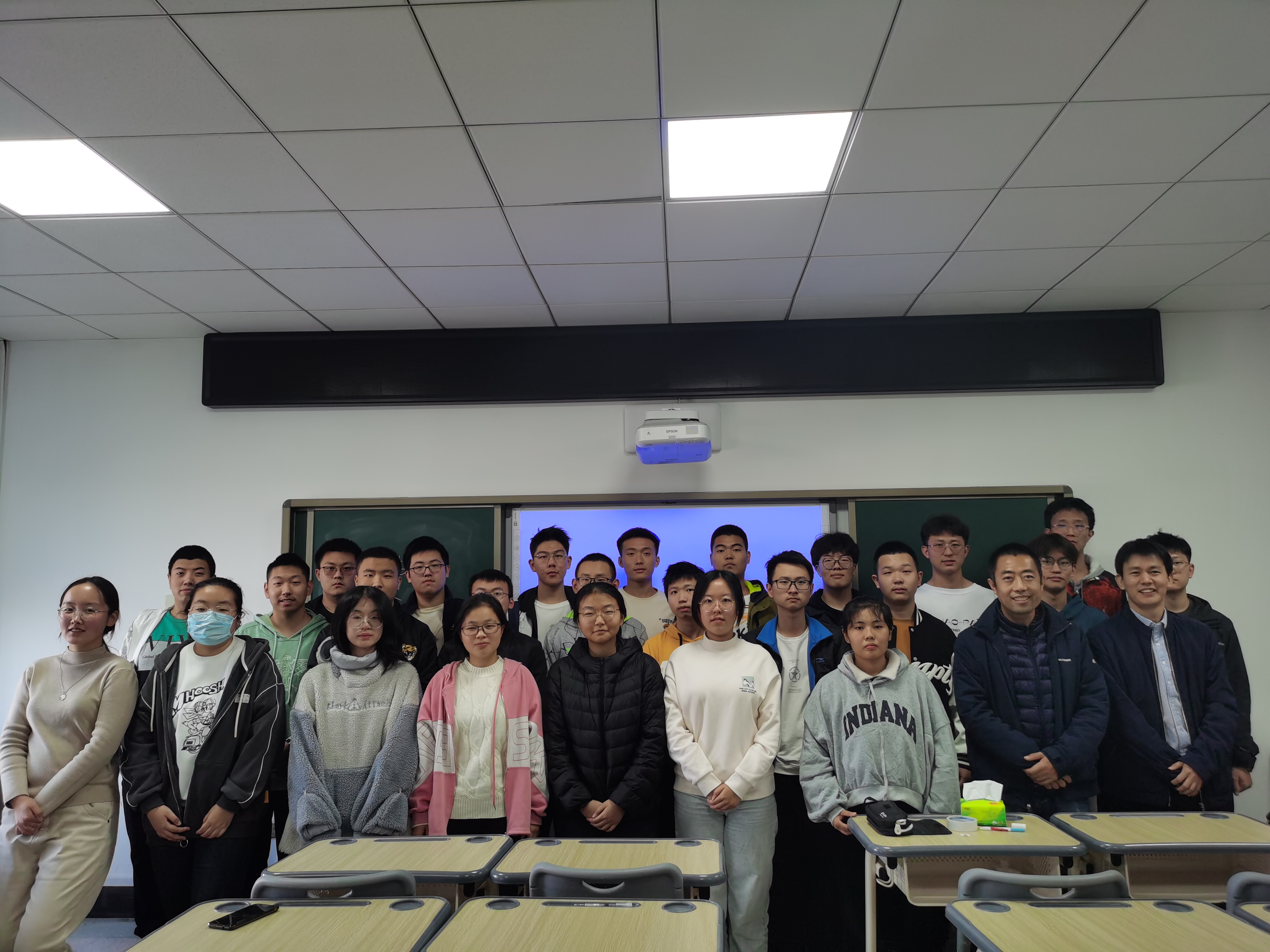 会议伊始,张老师与葛老师向同学们亲切问好,并且进行了简要自我介绍,随后全班同学依次进行了自我介绍,与老师进行交流与互动,现场氛围十分欢乐融洽。随后,张老师与葛老师结合自己的经历回答了同学们提出的有关学习、生活、专业、就业的各个问题,为同学们答疑解惑。见面会接近尾声,张老师和葛老师再次鼓励同学们要努力学习、积极进取、敢于尝试,充分利用大学四年的美好时光,实现青春理想。