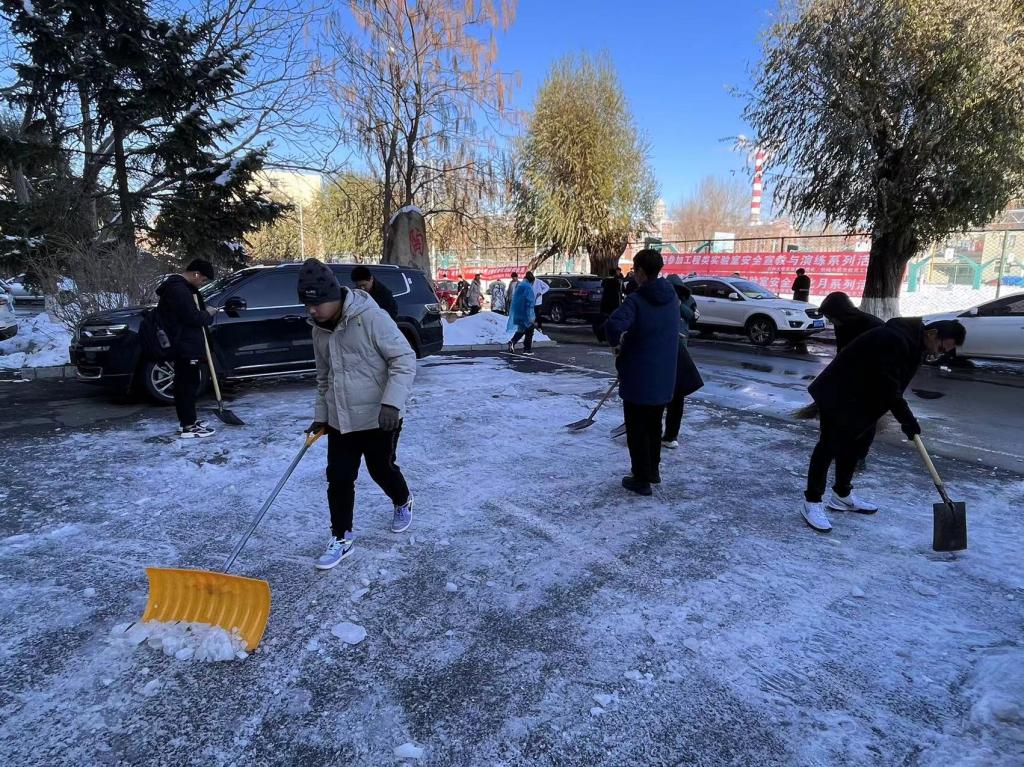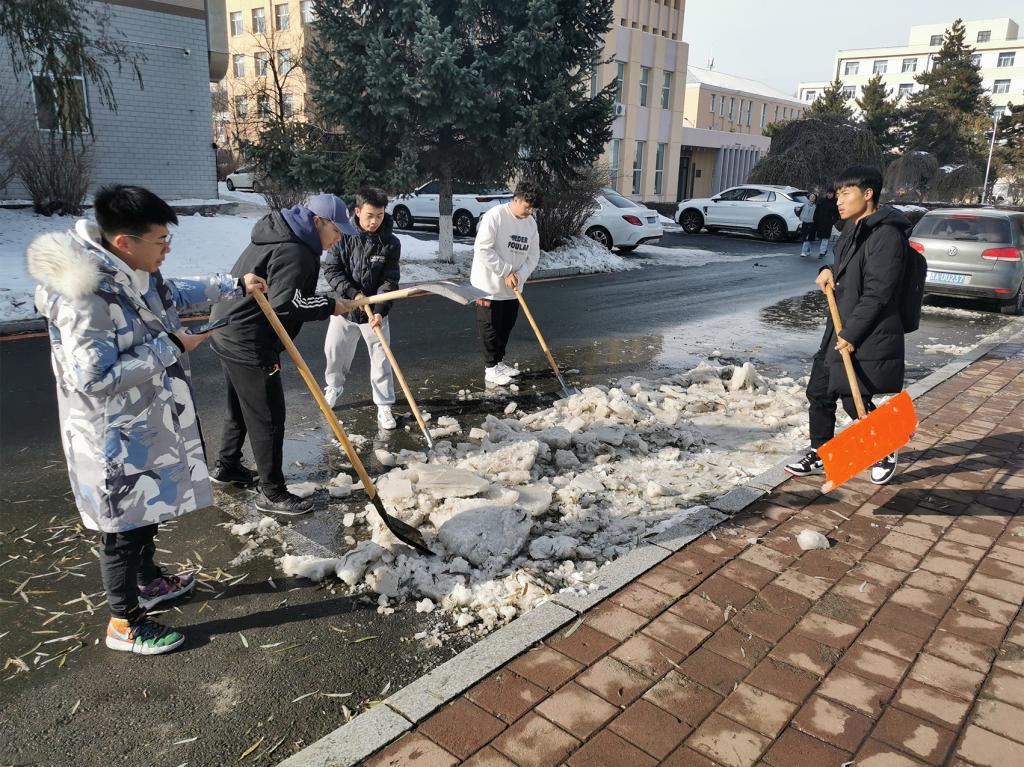 入党积极分子、2021级材料类专业本科生在本科生党支部书记、辅导员严冬老师的组织和带领下,于2021年11月12日、13日分别对分担区内进行扫雪除冰工作。