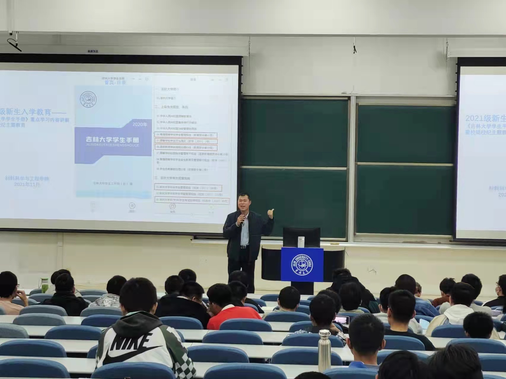 2021级新生入学教育工作方案》等相关工作要求,为了让新生同学能够更快的适应大学学习,使新生同学完成从高中到大学,学习和生活模式的转变,引导学生提高自我管理、自我教育、自我服务能力,结合近期相关事件案例,特组织2021级材料类专业学生集体学习《学生手册》。