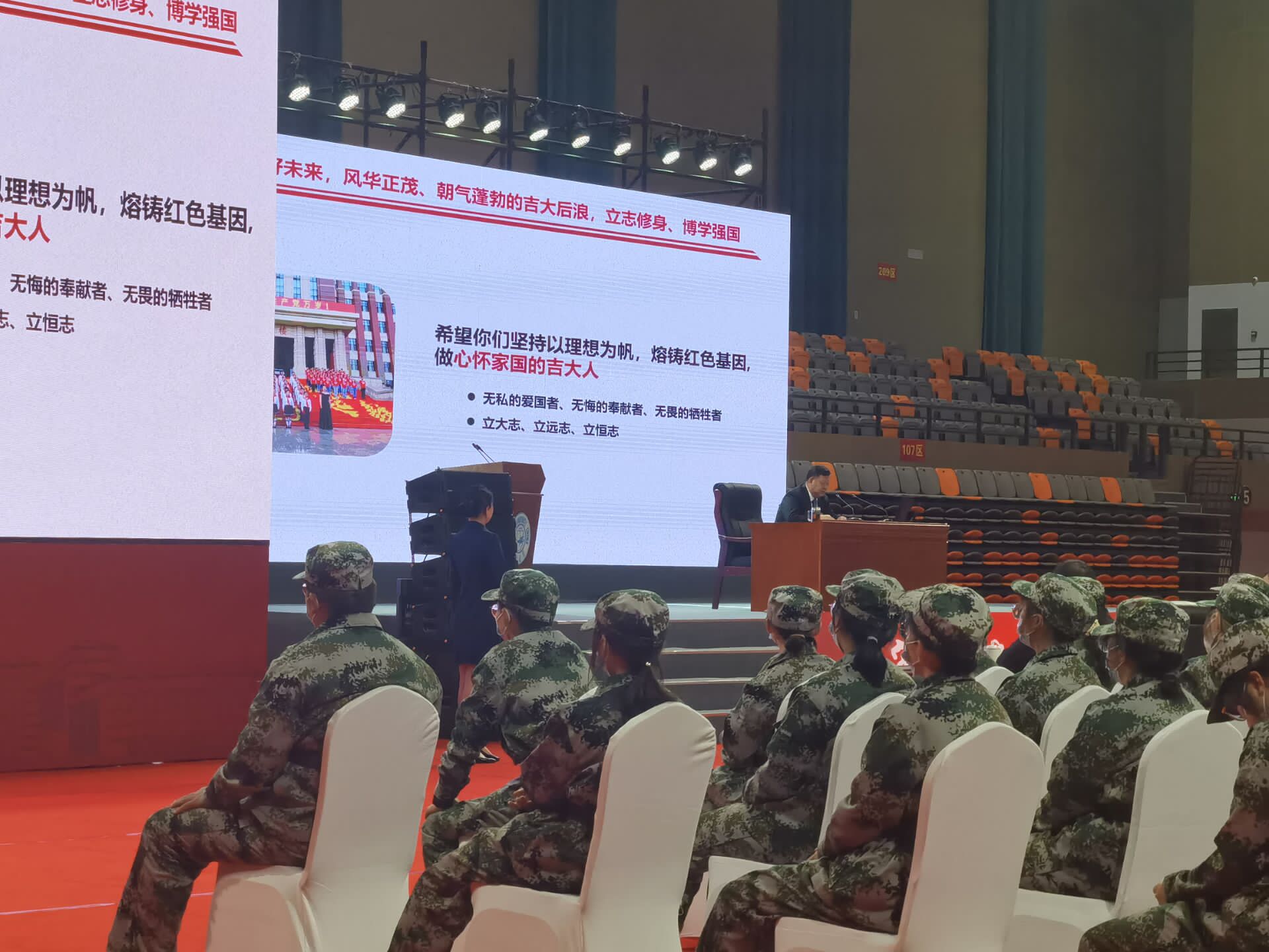 2021级新生在中心校区宋治平体育馆迎来了“开学第一课”,校党委书记姜治莹围绕深入学习贯彻习近平总书记在中央人才工作会议上的重要讲话精神,以“赓续黑料正能量