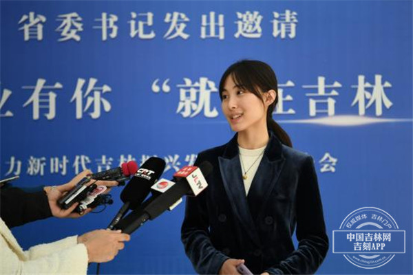 本科生辅导员王晗在报告会主会场接受人民日报、吉林日报、吉林广播电台等媒体的采访,她表示“作为一线老师,我会积极地引导学生留在吉林,希望能在同学们就业的选择上提供指导和帮助,让大家一起为新时代吉林发展出一份力。”