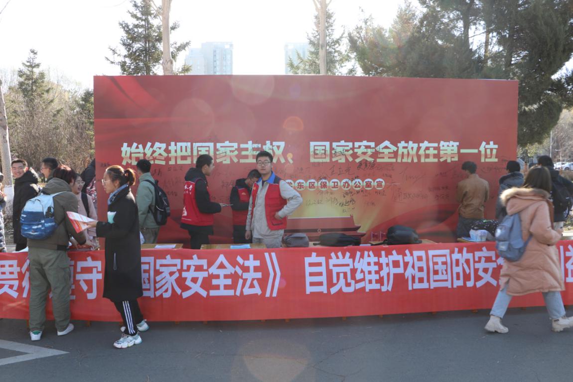的同学组织的志愿者队伍向同学们发放传单,引导学习消防和国家安全等知识,参观消防服装以及各种常见违章电器,广场各个展板前人群络绎不绝,活动达到高潮。大约一个小时后,随着展板上签满师生姓名本次消防疏散演练及安全宣传活动圆满结束。
