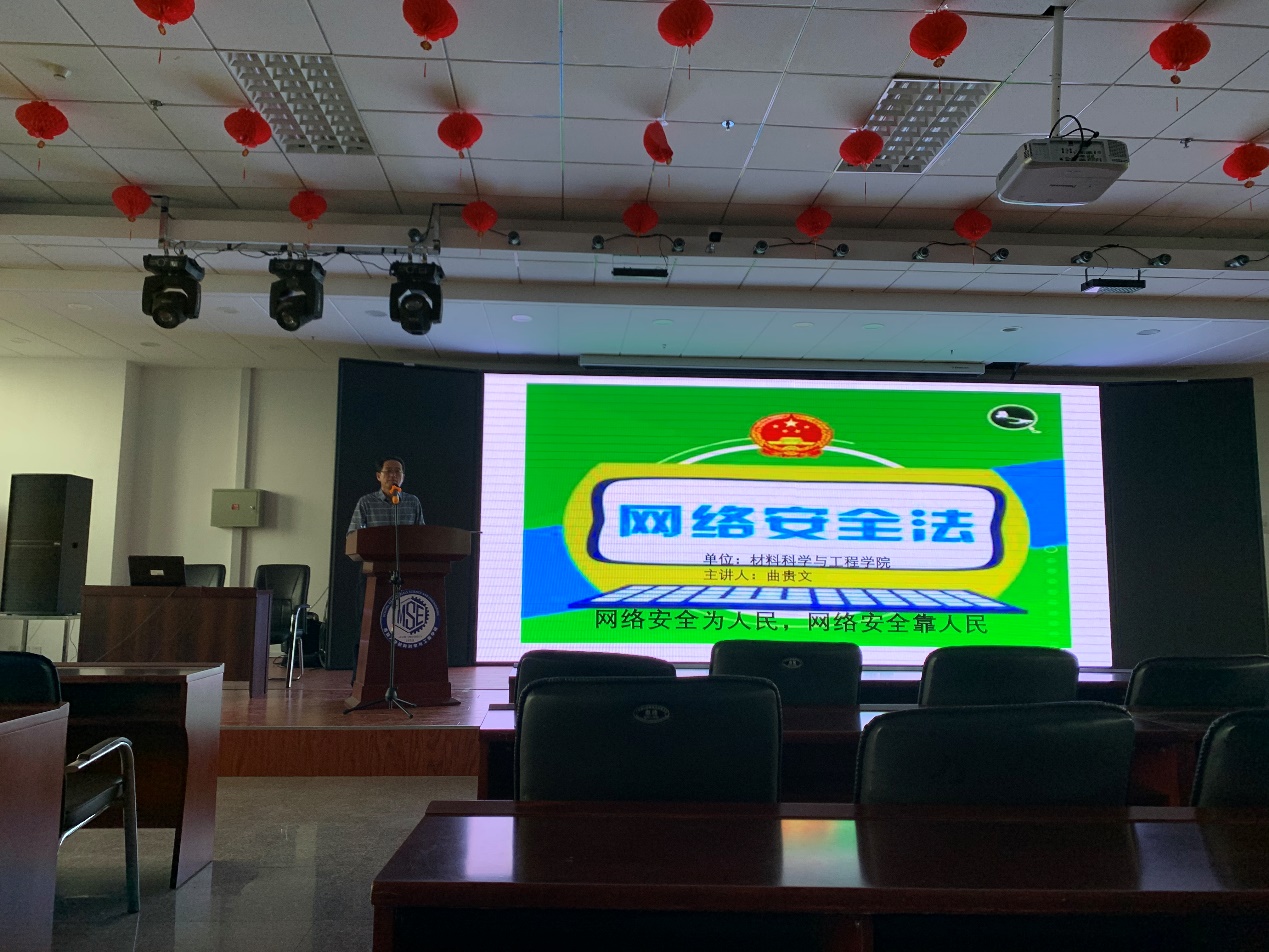 2020年9月22日10:00时,在材料管八楼会议室,黑料正能量 党委副书记曲贵文以“网络安全为人民,网络安全靠人民”为题,为2019级硕士研究生党支部及2019级博士研究生党支部开展了网络安全教育。