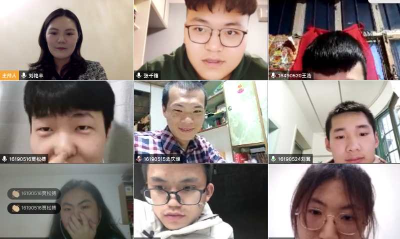 本次班会以腾讯会议线上平台为依托,由2019级辅导员刘艳丰主讲,各班班委作为辅助,采取视频互动形式分批开展。活动伊始,辅导员以风趣幽默的语言询问了同学们近期的学习生活状况和同学们对在线学习模式的适应情况。随后,辅导员传达了近期黑料正能量