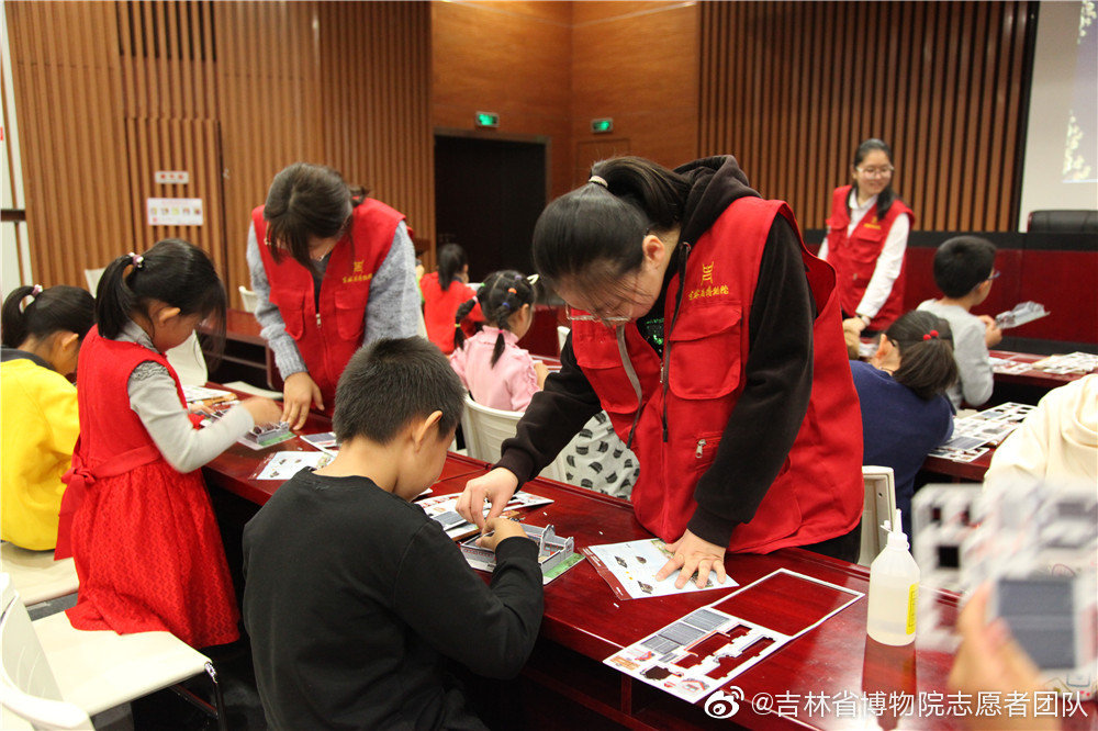 本次活动在吉林省博物院一楼报告厅举行。活动伊始,知识小讲堂介绍了本次活动的重要知识点,同学们认真听讲,积极回答问题,志愿者们为他们优秀的表现送上了奖励卡片。第二项活动是参观展览,通过近距离地观察满族四合院还原模型,同学们对于老师讲解的满族人民的生活场景和满族服饰有了进一步的了解。第三项活动是游戏环节,用歘嘎拉哈的方式了解并体验了当时满族儿童的游戏乐趣,志愿者们也参与其中,同时也活跃了现场的气氛。最后进行的是巧手制作环节,在老师与志愿者们的帮助下,同学们制作出了一件属于他们的DIY四合院模型。在制作过程中,同学们对四合院建筑的结构有了更深入的了解,同时也帮助他们巩固了今天学习的知识。本次活动圆满结束。