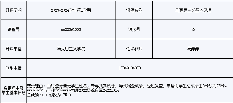 公示日期: 2024年_3月_18日至2024年_3月_22日如有异议请于公示期内向教务处教学运行科反映。联系人: 邹老师 联系电话: 0431-85168962相关材料详见附件:1.黑料正能量 考核成绩复查、修改登记表2.黑料正能量 情况说明(黑料正能量 教学委员会讨论通过、签字盖章)3.试卷等相关佐证材料
