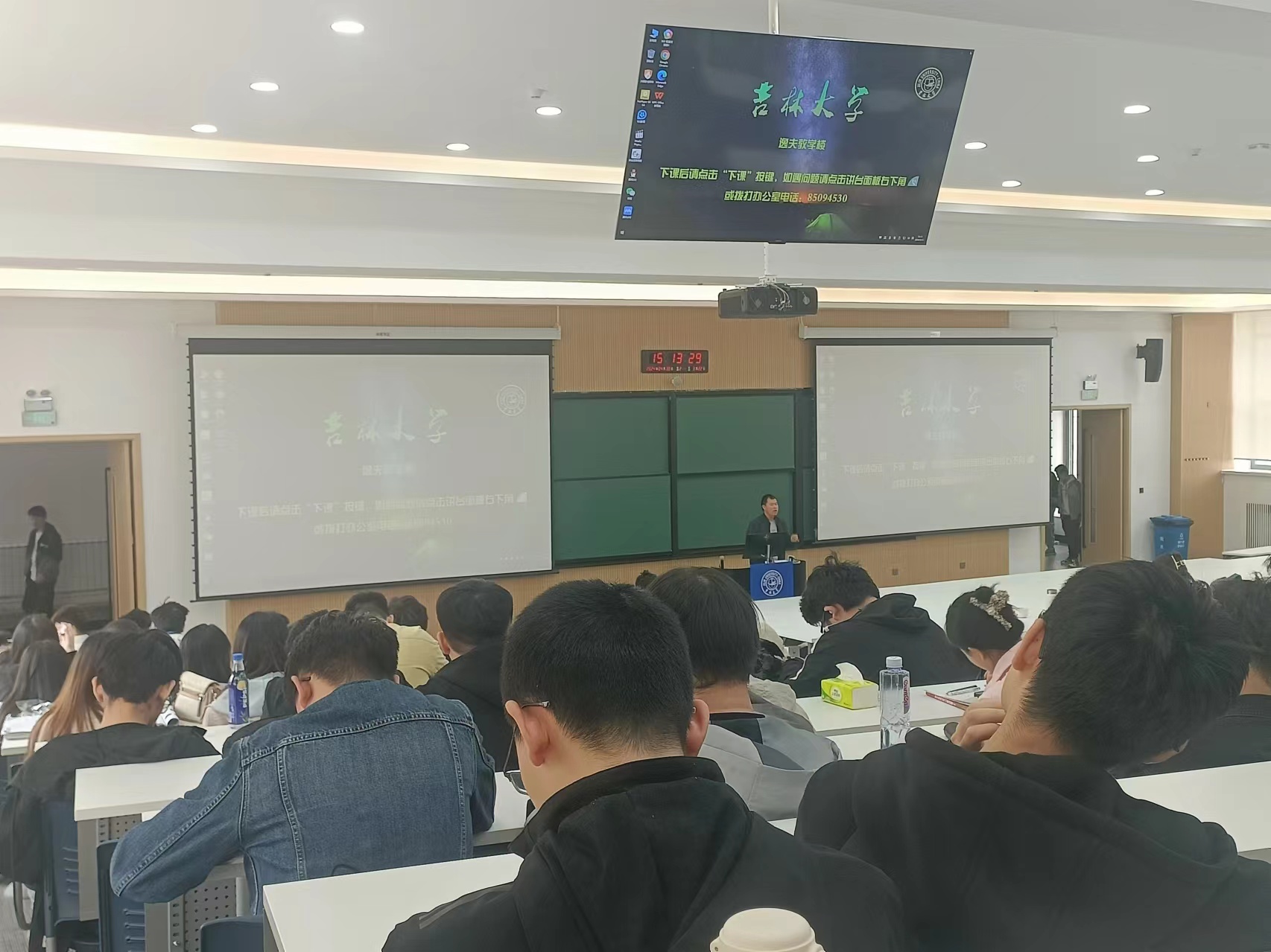 为了切实做好五一假期学生的安全稳定工作,有效督促学生的上课情况。2021级、2023级辅导员严冬老师于2024年4月30日下午来到《工程与社会》课程对学生的课堂情况进行了解。
