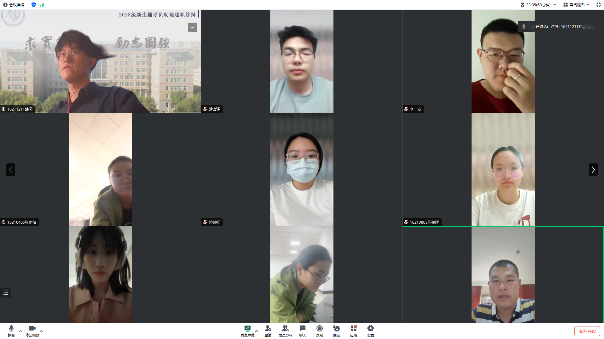 于2024年5月13日晚八点在腾讯会议线上召开21级教学班与行政班主要学生负责人会议,会议由严冬老师主持,各班级主要学生负责人参与此次会议。