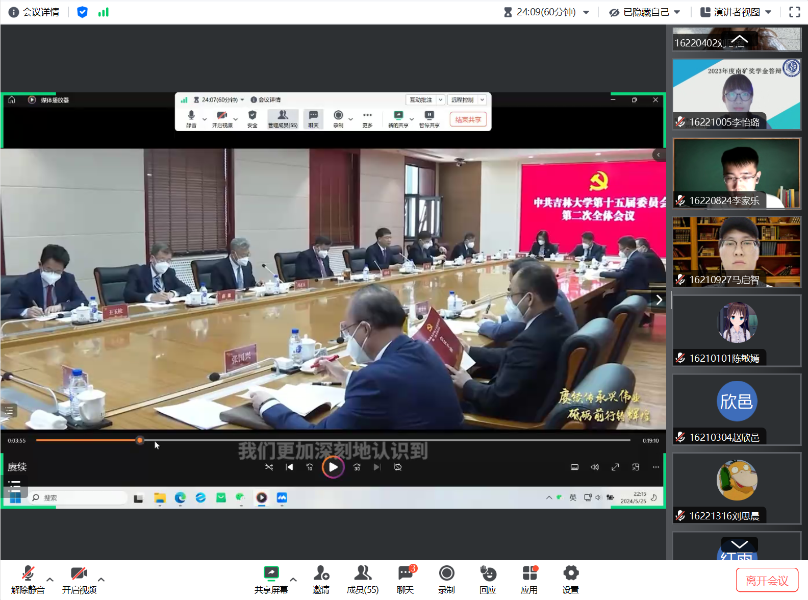 于2024年5月25日组织2024年第一期发展对象集体培训学习活动,本期发展对象培训班全体本科生学员参加。