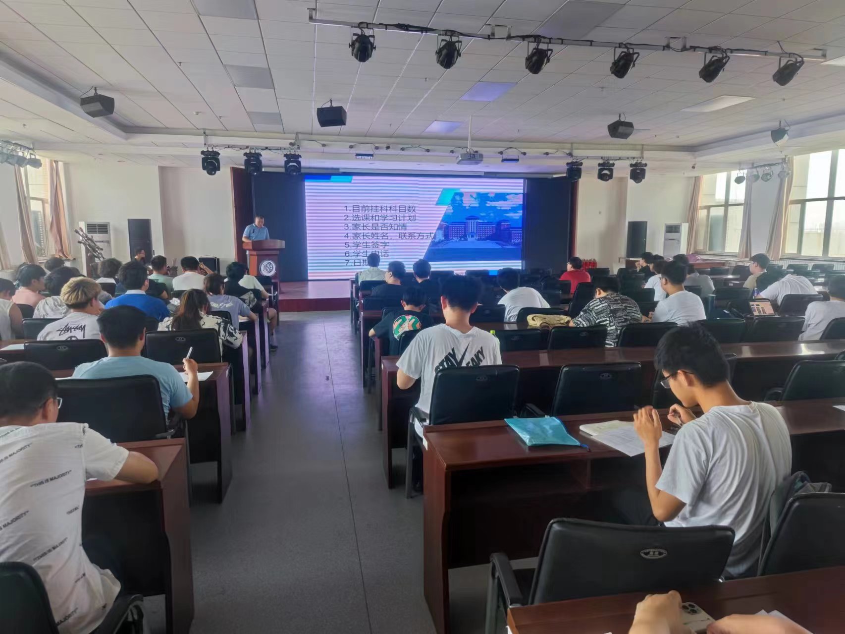 于2024年6月19日,在逸夫机械材料馆八楼报告厅召开年级大会,2021级辅导员严冬老师针对2021级学生开展了一次重要的学业提醒及集体谈话。
