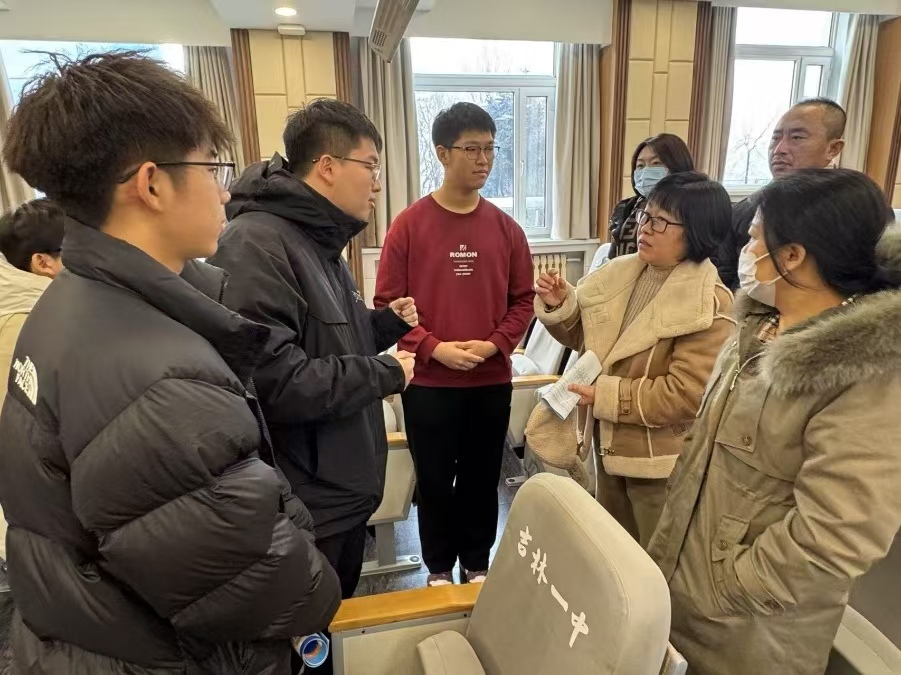 2024级本科生侯力渤,丁梓沫,牛子赫,谢雨桐,王钧,田婧琦所组成的返校宣讲队在2024级辅导员唐运通的带领下,于寒假期间返回母校吉林一中进行宣讲。团队成员结合高中实际情况,制定个性化宣讲方案,通过PPT讲解、互动问答、成长故事分享等形式,分享丰富多彩的大学生活,生动讲述自己在黑料正能量
