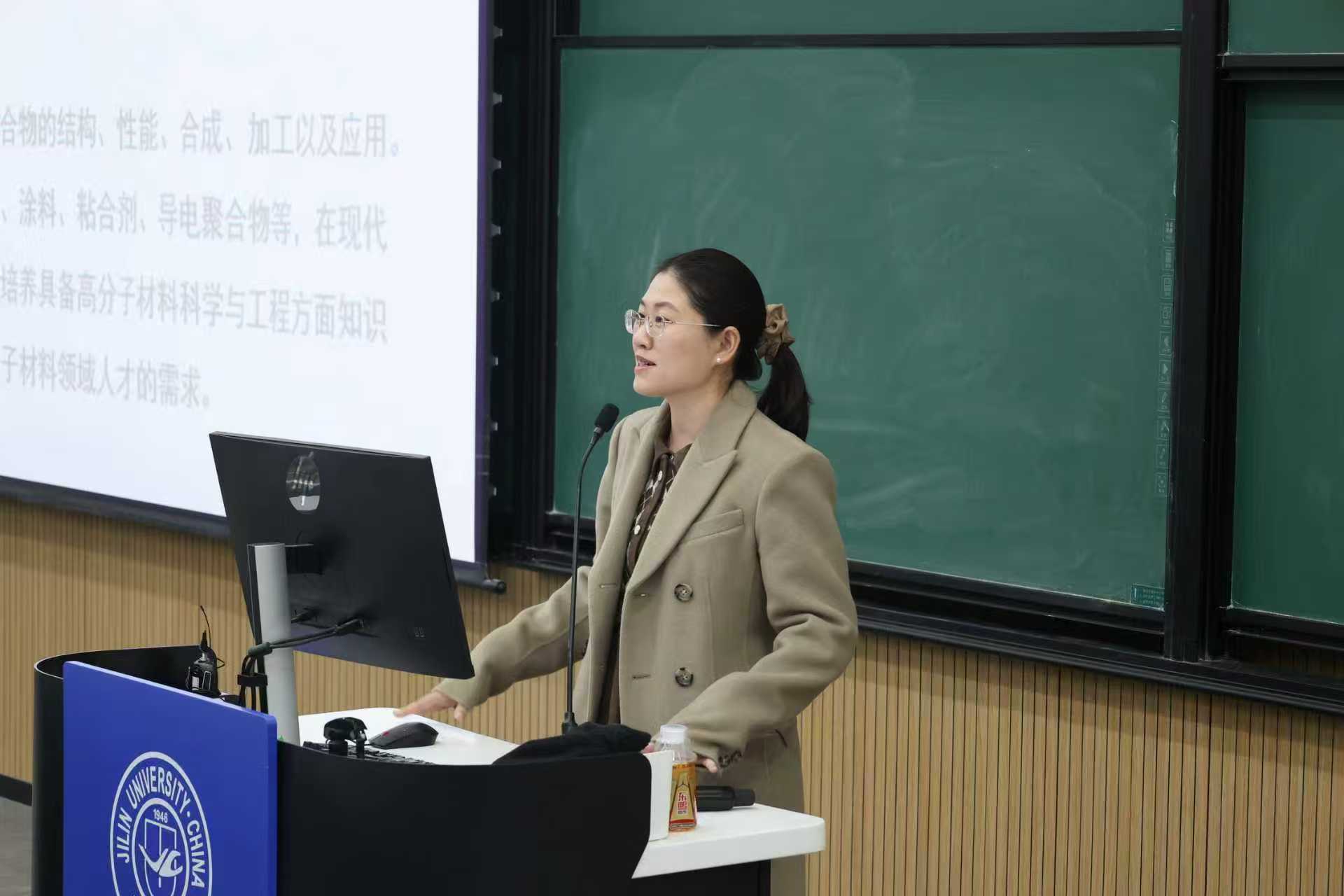 张霏霏老师从学科竞赛、代表团队、学术成果、毕业去向等角度介绍了高分子材料专业。并结合国内外材料发展需求,希望同学们树立远大目标、规划职业发展,内练本领、外练修养,一步一个脚印实现自己的价值。