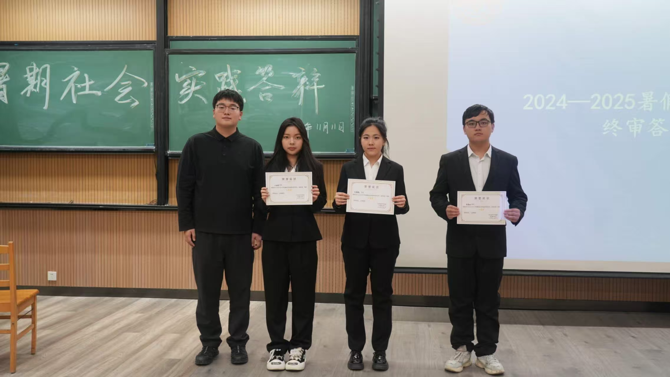 答辩会上,各实践团队通过PPT展示、视频汇报等多种形式,生动呈现了实践成果。“参韵长白”实践团队以“长白林海”的生态屏障功能和被誉为“百草之王”的人参特色产业为切入点,深入吉林省抚松县开展了深度调研;“青春筑金穗·吉耕天下行”实践团队前往孤店子镇大荒地村与乡村振兴青年先锋、全国劳动模范进行交流,围绕现代农业发展、黑土地保护利用、村企共建共赢等关键议题展开扎实调研;“红色文化传承”团队分赴吉林省内及周边的红色教育基地,走访东北抗联密营遗址、四平战役纪念馆等重要红色遗址,现场聆听革命历史讲解……经过激烈角逐,最终评选出一等奖2名、二等奖3名、三等奖5名。