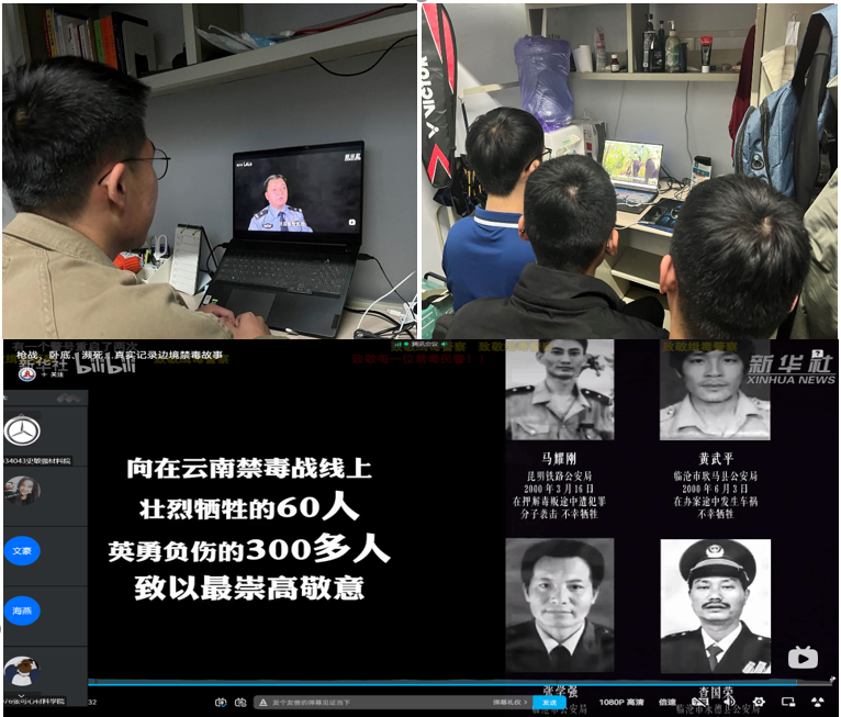 工作,先借助全国青少年毒品预防教育数字化平台积极开展线上学习,向同学们普及了有关毒品预防的知识,对毒品的危害进行初步了解。接着于12号材料化工班班长夏永进,史敏强组织开展“珍爱生命,远离毒品”主题班会,同学们积极配合,班级内以寝室为单位线上观看了有关边境禁毒的影像资料,大家无不为缉毒警察的英勇事迹而动容,并对吸毒、贩毒这种行为深恶痛绝。