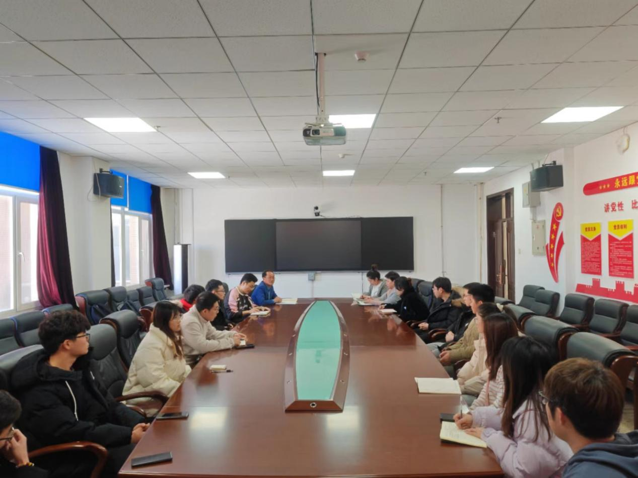党委副书记曲贵文老师主持,研究生办公室主任刘徽老师,研究生思政秘书杨淞老师,各年级研究生代表参加会议。