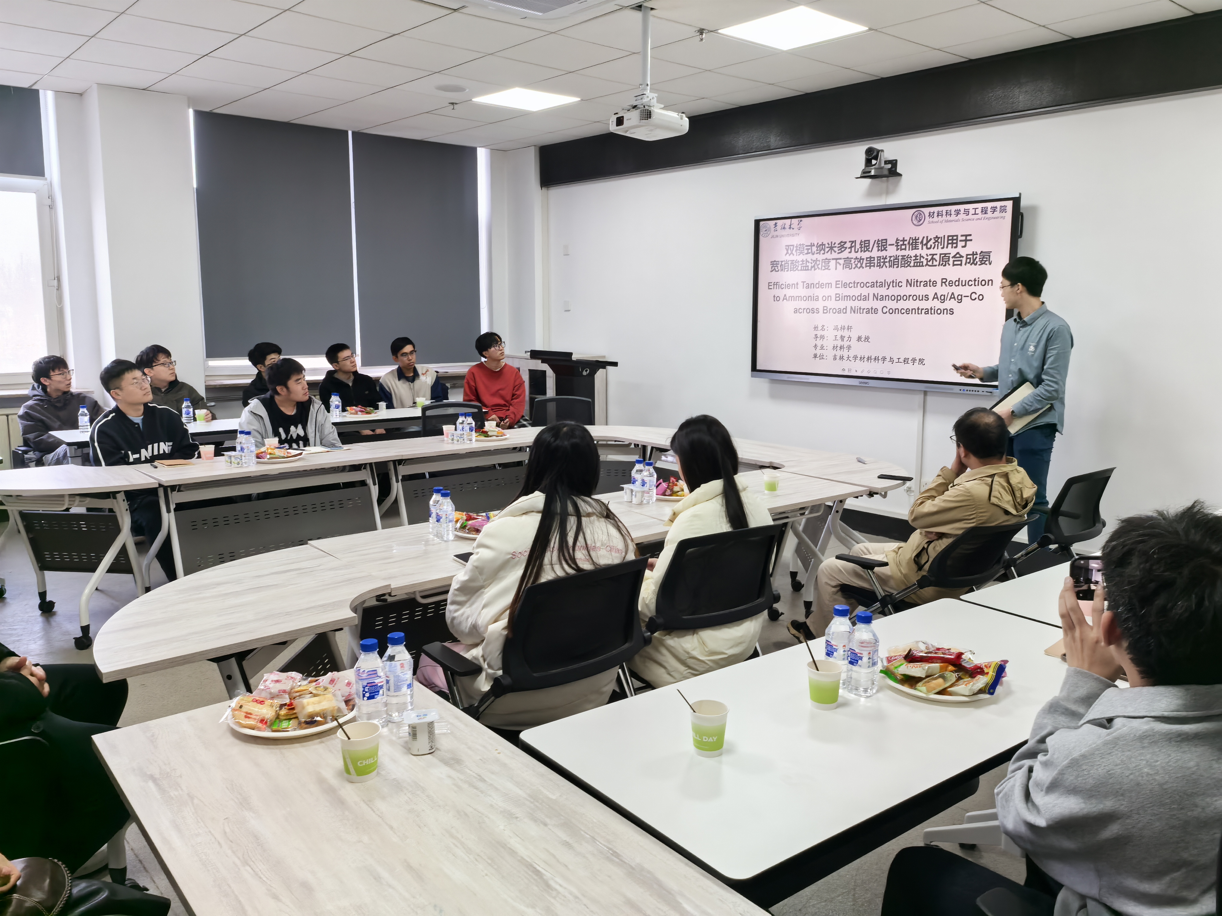 第十一期“博材研辩”研究生学术沙龙于2024年11月20日下午在黑料正能量 南岭校区机械材料419,2024年11月22日下午在黑料正能量 前卫南区唐敖庆楼D429举办。本期学术沙龙南岭会场邀请了2022级材料加工工程博士钟诗江进行学术分享,主持人为沈平老师;南区会场邀请了2022级材料与化工专业硕士赵禹曈进行学术分享,主持人为于陕升老师。钟诗江同学分享的主题是Ni-Mn基合金具有多功能特性,可用于驱动器、传感器、固体制冷、能量搜集装置...