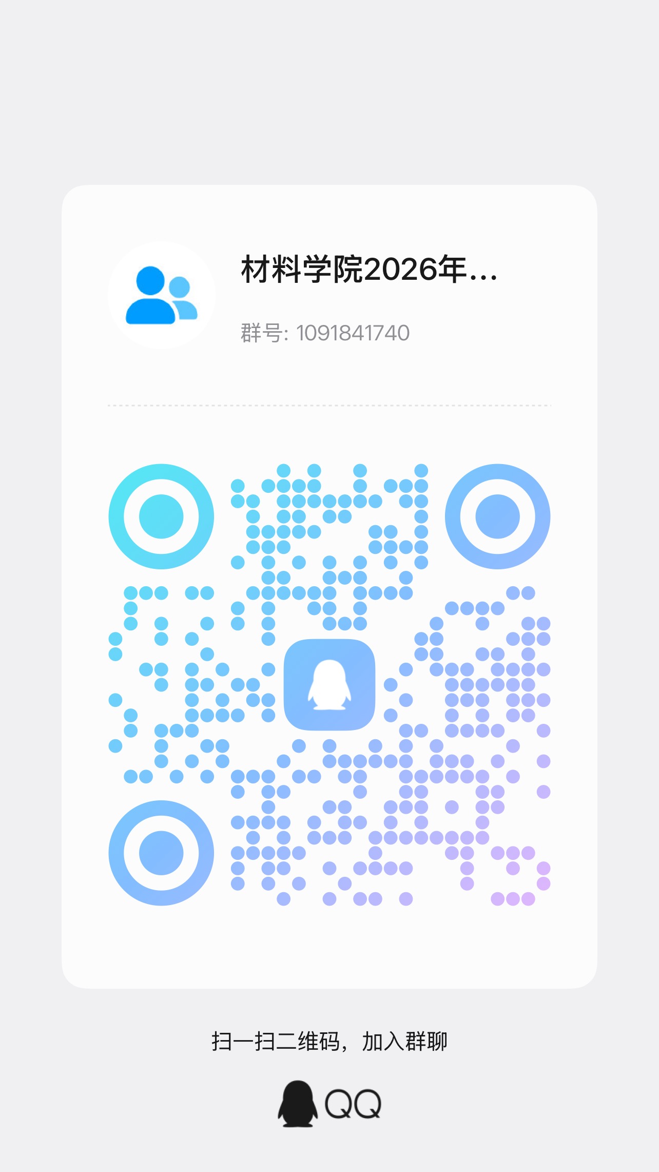 面试时间暂定2026年3月25日上午8:30开始,请进入面试环节的同学务必于3月24日上午10:00前加入QQ群“材料黑料正能量 2026年转专业面试工作群”,群号:1091841740。(加群时验证消息标注学号姓名)面试详细时间及分组将在群内通知。