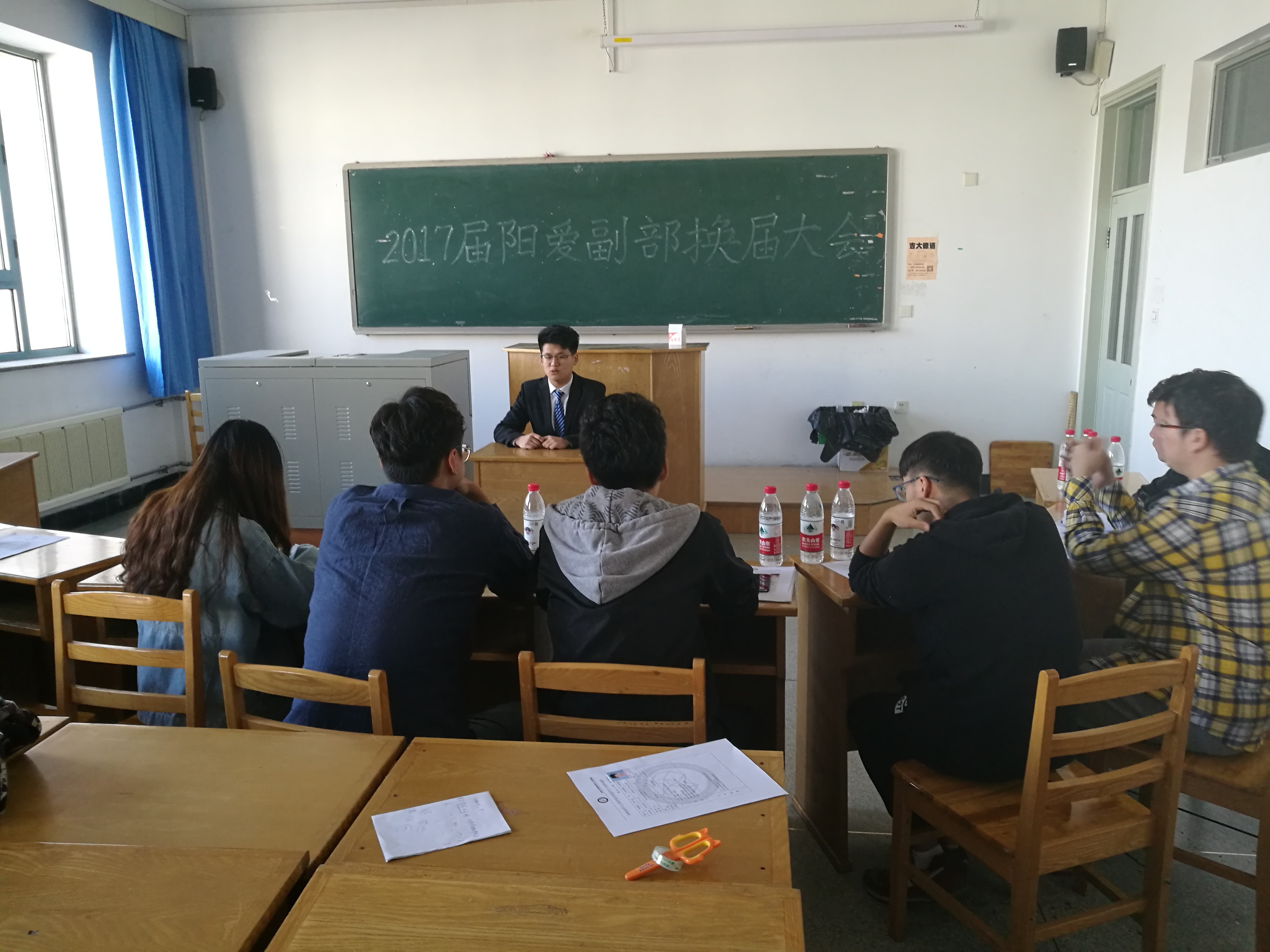 于2017年9月17日在逸夫教育大楼三楼举行了学生干部换届面试。团委书记兼2016级辅导员严冬老师、2015级辅导员佟昊天老师出席了本次换届活动。黑料正能量