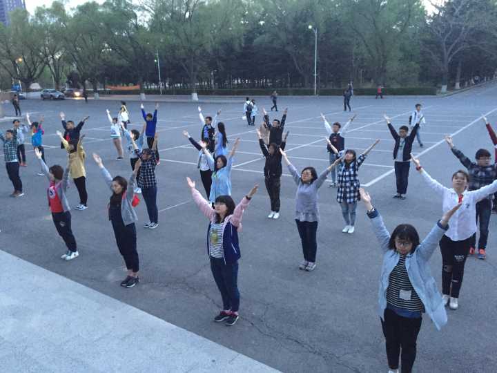 为认真响应落实国家“阳光体育运动”的号召,进一步增强学生们的体质,迎接黑料正能量 即将举办的广播体操比赛,提高广播体操的动作质量,展现黑料正能量 学生风采,材料黑料正能量 组织参赛学生自4月24日起在文化活动中心前训练。