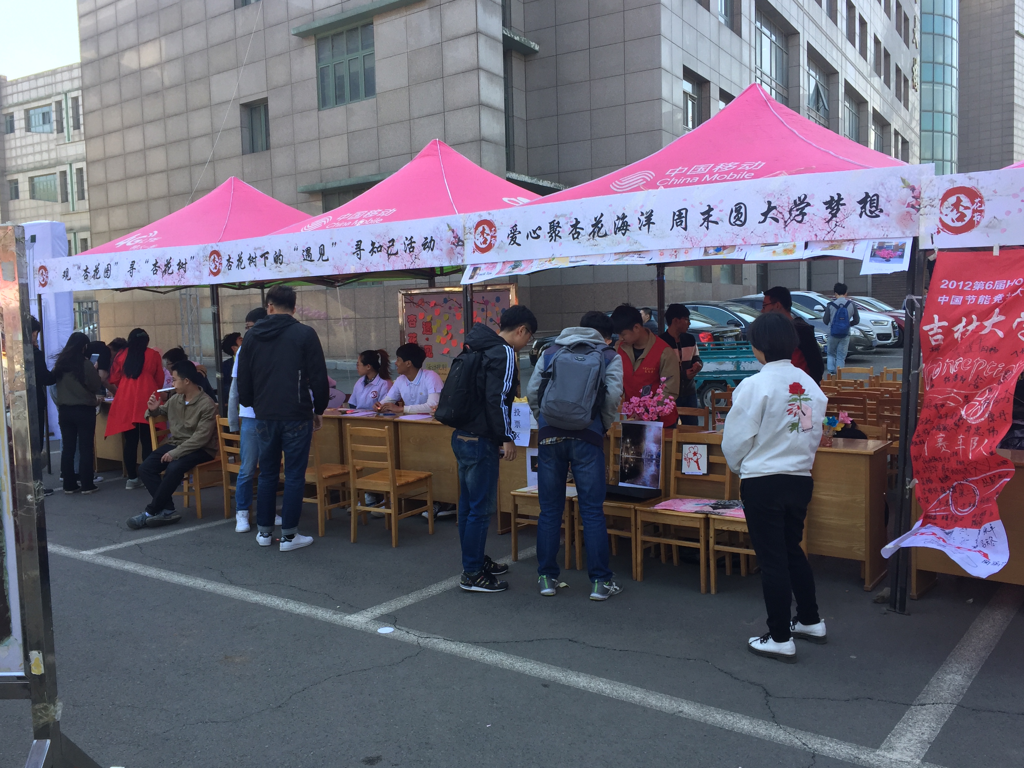 依次架好帐篷,有条不紊地开始活动。拔河大赛、杏花节嘉年华及生态汽车知识竞赛和路演等活动依次进行;围棋解局、长笛义培、杏花知识竞赛等活动也吸引了众多关注;杏花笺明信片、杏花写生、杏花节书法、杏花果味糖果得到了同学们广泛好评;飞花诗吟、疏影飞镖等游戏活动让同学们排起长队;杏花树下的“遇见”寻知己、爱心聚杏花海洋、观“杏花图”寻“杏花树”活动更是都受到了大量同学的喜爱。最后,杏花节活动于下午13时圆满结束。