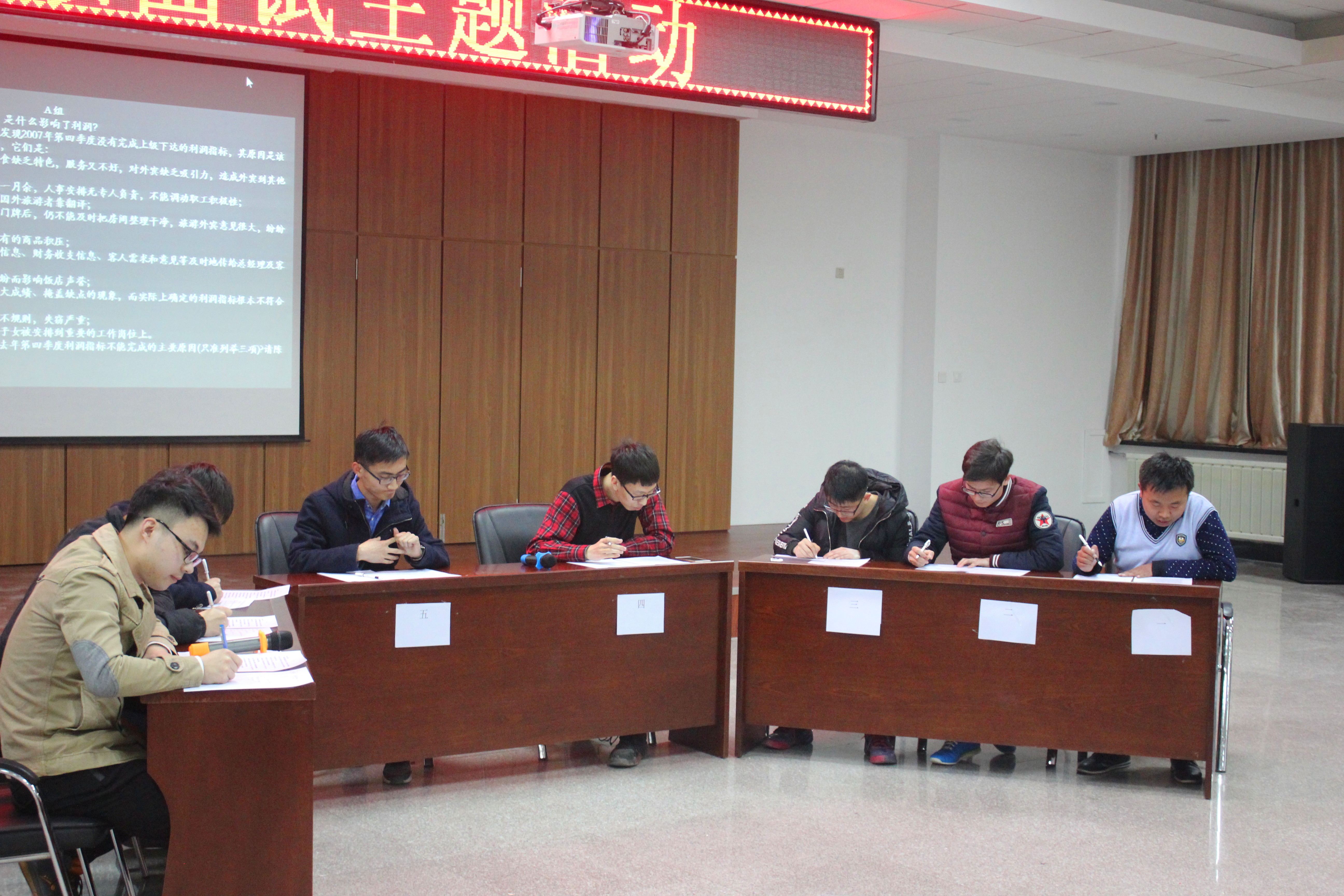 此次活动邀请了8位已签约工作的优秀师兄到场。首先,分别签约一汽大众和上海大众的马骁和陈俊师兄先后上台分享了自己的求职经验。两位师兄内容丰富的ppt和耐心的讲解使同学们受益良多。但纸上得来终觉浅,随后8位师兄一起为大家进行无领导小组讨论示范。台上师兄们的讨论你来我往,激烈争讨,而台下的同学们也早已跃跃欲试。师兄讨论结束后,由16位同学分为两组也分别进行无领导小组讨论。和师兄们的表现相比,同学们还略显稚嫩,讨论中出现不少问题。但随后经过师兄们的点评,很多同学对无领导小组讨论有了更深入的了解。